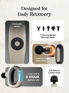 - Personalised Massage Heads: Comes with 5 interchangeable massage heads, including a soft round silicone head for better comfort and longer durability. Each head is designed to suit different muscle groups and recovery needs.
