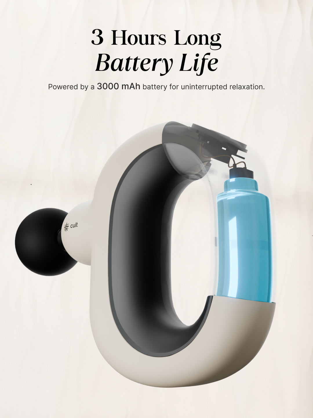 The Cult Halo Gun Massager delivers effective muscle relief for everyday recovery. With 5 interchangeable massage heads, a multi-grip adjustable handle, and 6 intensity levels powered by a 30W motor, it targets muscles with precision and comfort. Its cordless, ergonomic design and 3000mAh battery provide up to 3 hours of use with easy USB Type-C charging, making it simple to recover anytime, anywhere.