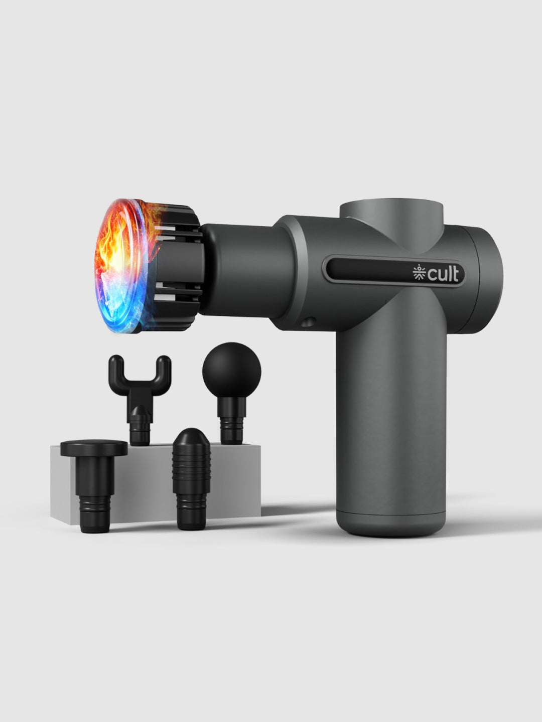 Cult Impact Edge Deep tissue massage gun, Dual Hot and Cold therapy head, 3000mAh battery, 6-speed intensity, Silicone round head, Full body gun massager machine