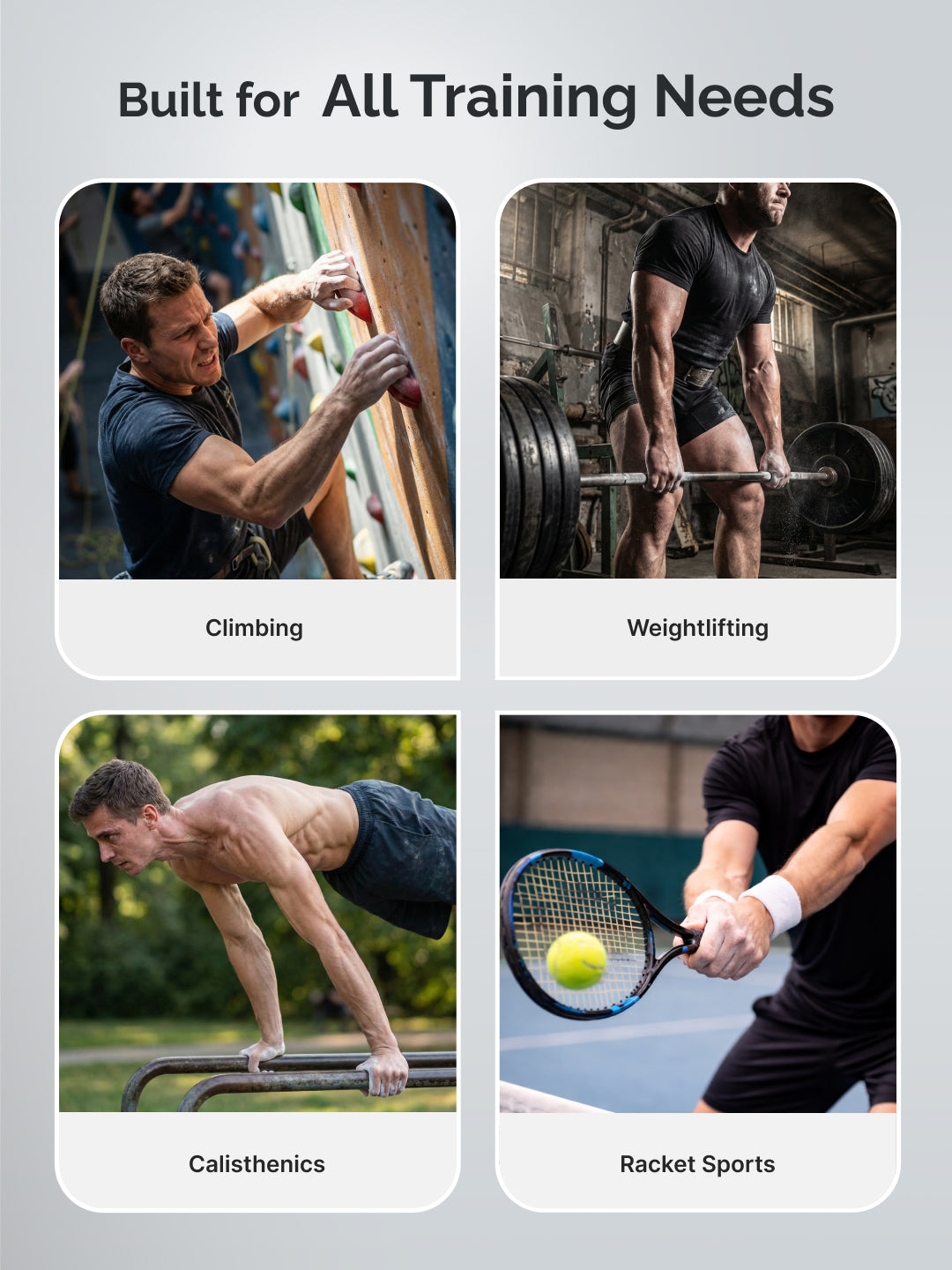 - Multi-sport use for weightlifting CrossFit and climbing