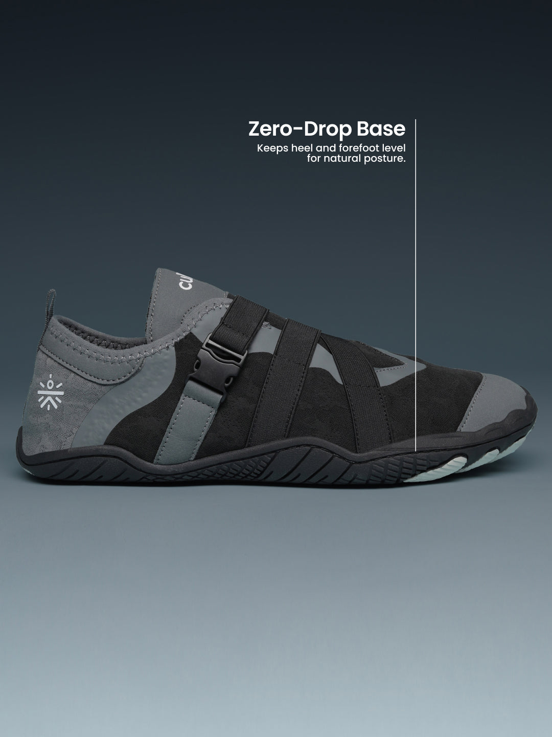 Step into freedom with the Cult Men's AquaGrip Barefoot Shoes, built for natural movement from the ground up. The wide toe box and zero-drop base keep your heel and forefoot level, promoting natural posture, balanced alignment, and a centred, stable feel through every step. The flexible sole moves with your foot, allowing true natural foot movement while maintaining controlled traction for running, jogging, training, and everyday use. The high-traction, non-slip rubber outsole maximises surface contact to keep you steady on pavements, gym floors, and light outdoor paths, giving you confident grip in all directions. Inside, the soft perforated EVA insole delivers cushioned barefoot comfort, constant airflow, and gentle support without losing ground feel—ideal for anyone seeking a more minimalist, foot-friendly ride. The breathable knitted upper stretches naturally with your foot, staying lightweight, cool, and flexible without squeezing the toes. At just 300 g, this minimalist design keeps things featherlight, reducing fatigue and encouraging natural movement all day. Finished with an adjustable Velcro closure for quick, secure lockdown, these barefoot shoes shift easily between walking, running, functional training, and even beach or quick-dry water shoe use—versatile, flexible, and made to keep you moving naturally.