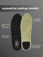 Step into comfort with Arch Pro, designed for mild flat feet. These insoles offer gentle arch support to improve balance, reduce foot strain, and promote proper alignment during everyday movement. The gel cushion in the heel and forefoot works with a dual-layer PU base to deliver effective shock absorption and long-lasting comfort. They also offer daily pain relief by reducing pressure in key stress zones, making them ideal for prolonged standing or walking. The sweat absorbing top layer keeps your feet dry and fresh. The trim-to-fit inserts work seamlessly with sneakers, boots, formal shoes, and more.