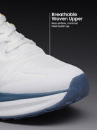 Stay ready for every mile with these Cult Men's Zyro Running Shoes, built for comfort and performance. The breathable woven upper with TPU overlays delivers ventilation and structure, keeping your feet cool while providing the support needed for active runs. The thick, curved EVA midsole works as a stable base, guiding smoother transitions and offering shock absorbing comfort that reduces strain during long sessions. The cushioned PU foam insole with a padded collar enhances step-in feel, giving extra comfort and responsive support from start to finish. Underneath, the high-traction TPR outsole ensures dependable grip on different surfaces, keeping you steady whether on the track, pavement, or gym floor. Designed to feel lightweight yet durable, these shoes combine performance tech and reliable cushioning to keep you moving with ease.