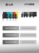 Achieve a full-body workout anywhere with the Cult Resistance Band Set of 11. This versatile kit includes colour-coded toning tubes with varying resistance levels, ergonomic foam handles for a secure grip, and sturdy ankle straps to target both upper and lower body muscles effectively. The included door anchor expands your exercise options, letting you perform a range of strength training, stretching, and rehabilitation workouts safely at home or while travelling. Designed for durability and portability, the set comes neatly packed in a convenient carry bag, making it easy to maintain your fitness routine wherever you go.
