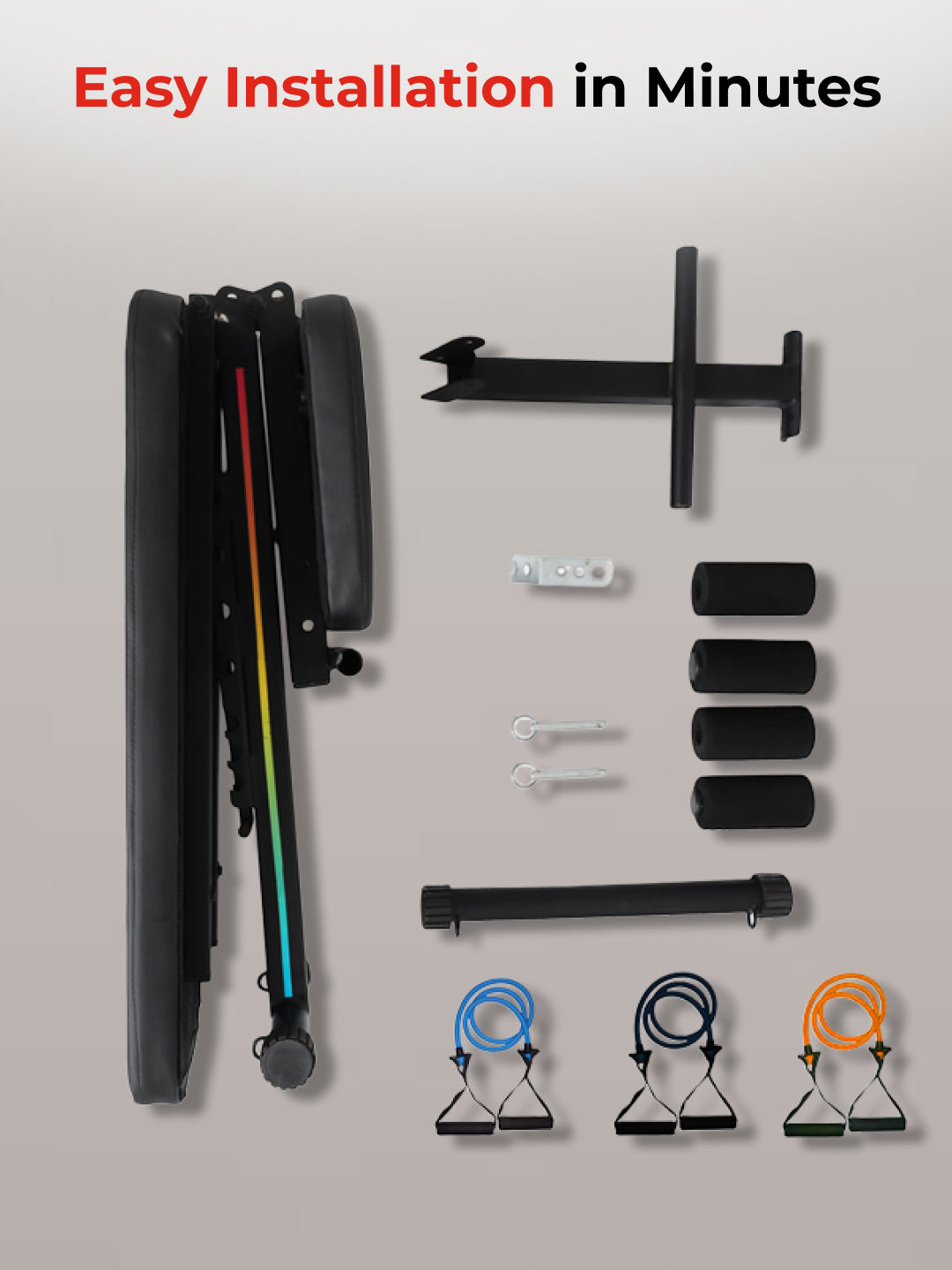 - [Premium Comfort]:- Features 35mm high-density Litlon foam cushioning covered with durable premium rexine for enhanced comfort and support [User-Friendly Features]:- Equipped with foam-padded foot rollers for added comfort during decline exercises, and a fixed small seat for focused upper body training.