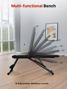 - [8 Adjustable Positions]:- Includes 6 incline, 1 flat, and 1 decline setting to support a wide range of full-body workouts such as dumbbell presses, core exercises, and strength training