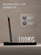 - 100kg Maximum Weight Capacity: Built with a strong steel frame and durable walking belt, supporting users up to 100kg for safe and stable exercise. Note: Always choose a treadmill that can support at least 20 more kilograms of weight than your current weight, since the impact weight increases.
