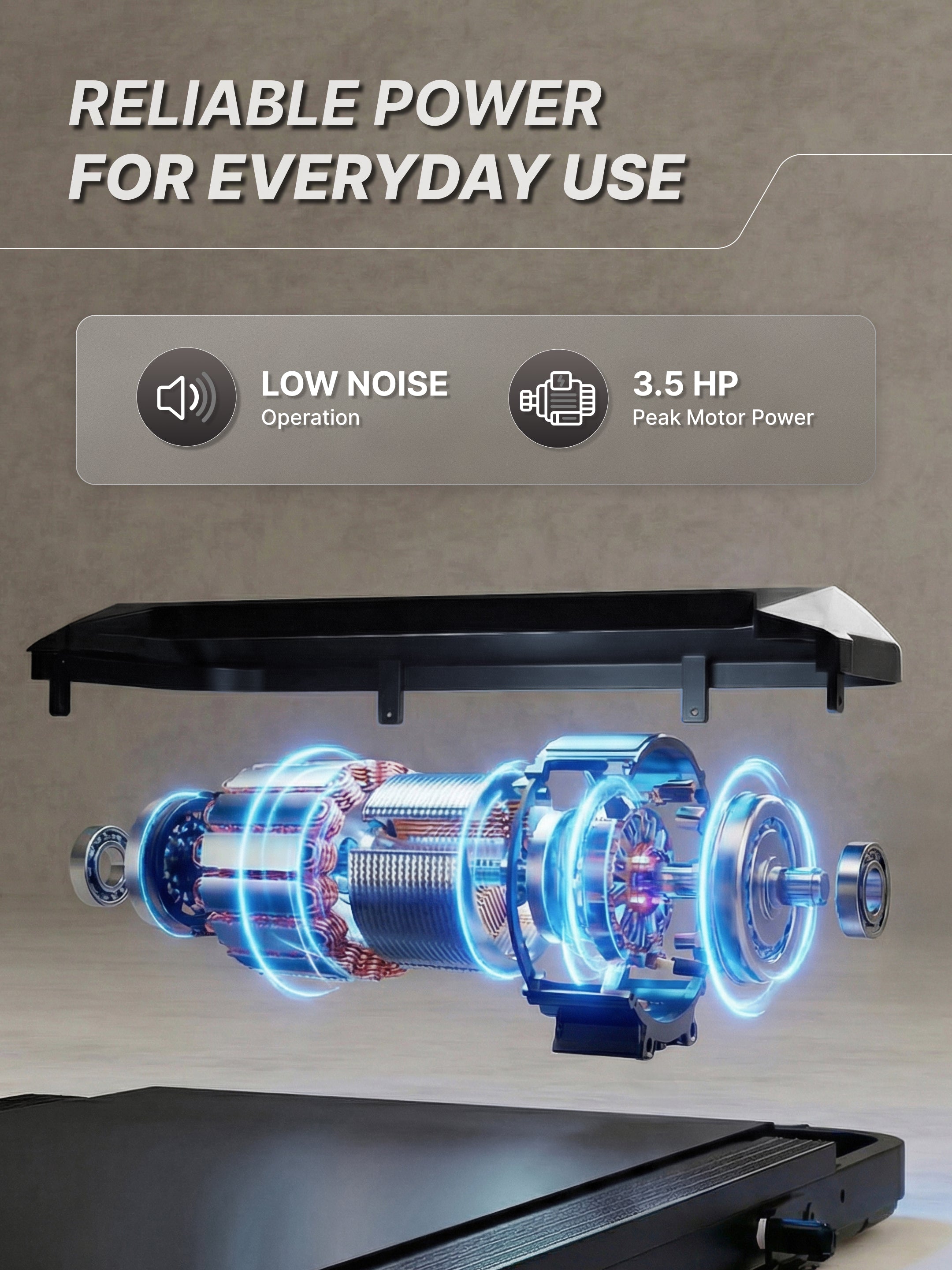 - Powerful 3.5HP Peak Motor: Equipped with a DC motor delivering 3.5HP peak and 1.75HP continuous power, ensuring smooth, quiet, and efficient performance for daily walking workouts.