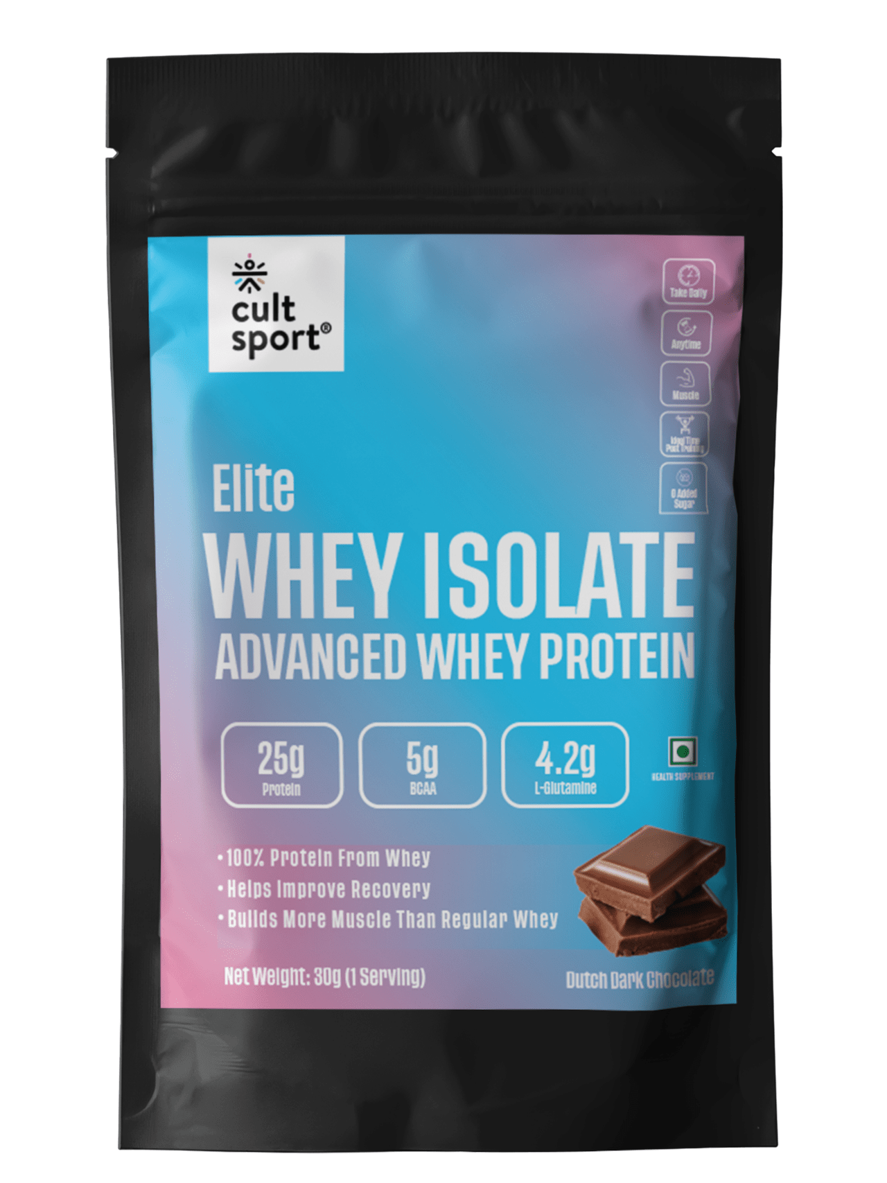 Cultsport Elite Whey Isolate is Premium Blend of Whey Isolate and Whey Concentrate, which delivers 25g Protein per serve. Cultsport Elite Whey Isolate is the best option for those athletes and sports enthusiasts that do intense, frequent training. Highest Biological Value and High Digestibility. Builds Muscle Mass: Premium Blend is rich source of Protein which helps to Build Lean muscle, Enhances recovery, Supports Healthy Metabolism and Reduces Muscle loss. With 5.0g BCAA and 4.2g L -Glutamine per serving, this Whey Protein is available in Belgium Dark Chocolate. Readily dissolves in water or milk, no lumping or residue, For Best taste & mixability mix 1 scoop (30g) in 180-200 ml water for best results.