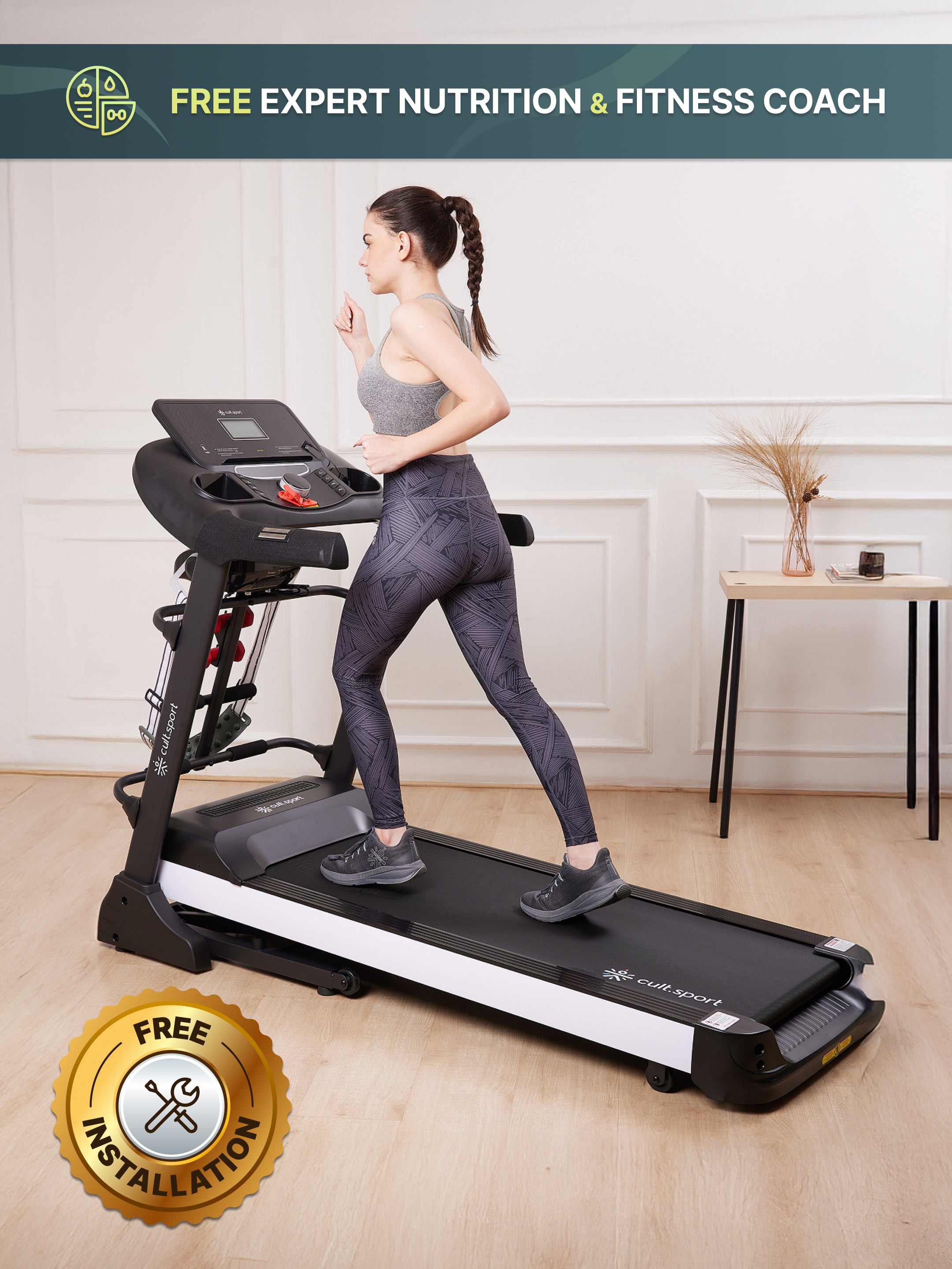 Info: Always choose a treadmill that can support at least 20 more kilograms of weight than your current weight, since the impact weight increases during running and walking. 1-year warranty against manufacturing defects & electronic parts, only if used with a stabilizer (1000 VA recommended). To better maintain your Treadmill and extend its life, it is recommended that the machine be operated at a voltage between 220 and 240V.