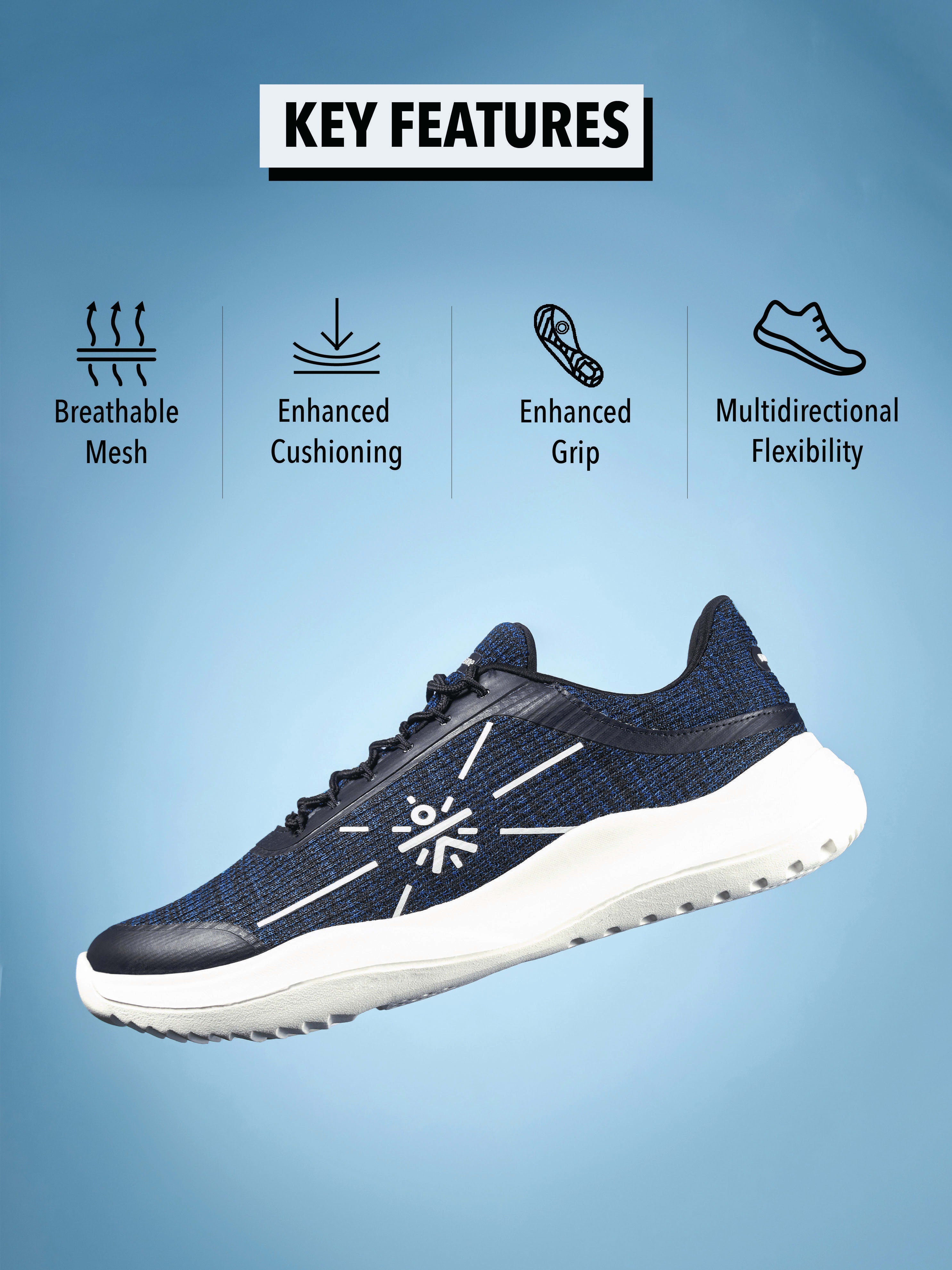 The Cultsportone Dart running shoe adds functionality and style to your running routine.Designed with breathable mesh, the engineered upper enhances your comfort during long running sessions. Added protection is given to your toes by fusing in the toe area. This shoe features a rubberised EVA outsole with a high abrasion compound that ensures durability at every pace, and a heel collar that protects the ankle. Superior cushioning and rebound are provided by German-engineered insoles. Take to the streets in this shoe that seamlessly blends style and functionality.