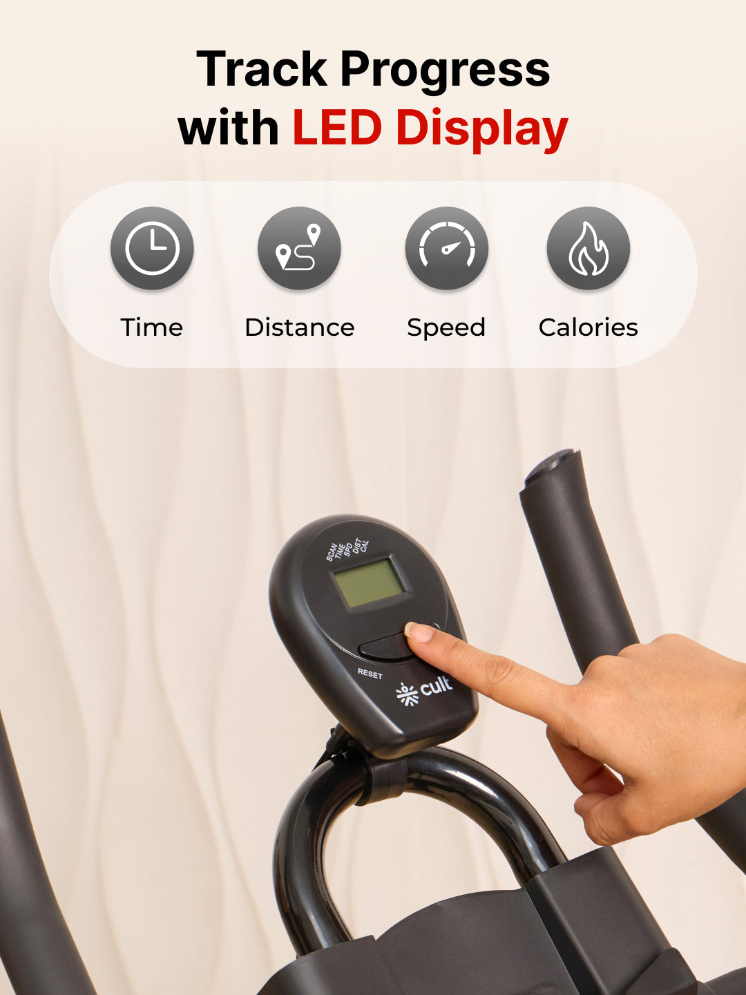 The Fitkit by Cult FK7001 is a sleek and efficient exercise machine designed for users seeking a compact and durable fitness solution. With its elegant black finish, it combines functionality and style, making it a great addition to any home or gym. This machine is built to handle a maximum weight of 110kg, offering exceptional stability and reliability. Its dimensions of 850mm x 450mm x 960mm and a gross weight of 18kg make it portable yet sturdy. The flywheel, weighing 6kg, ensures a smooth and consistent performance during workouts.