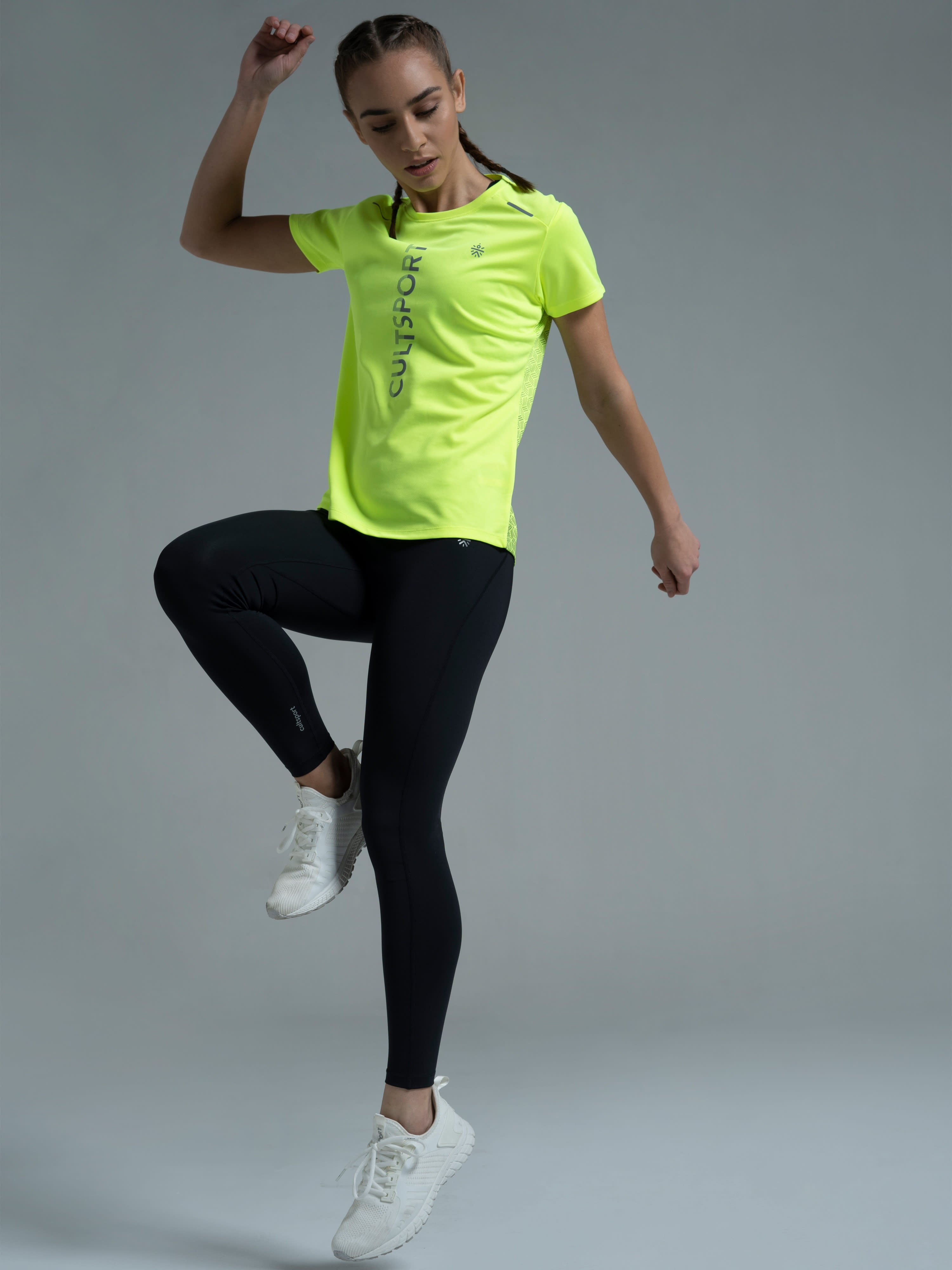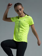 Confer a sporty edge to your running attire with this FlashRun Neon Women's Running T-shirt that has FlyDryPRO technology with Cool Pass to keep you dry no matter how much you sweat. It's also lightweight and breathable, making your run more comfortable. It's time to beat your own best!