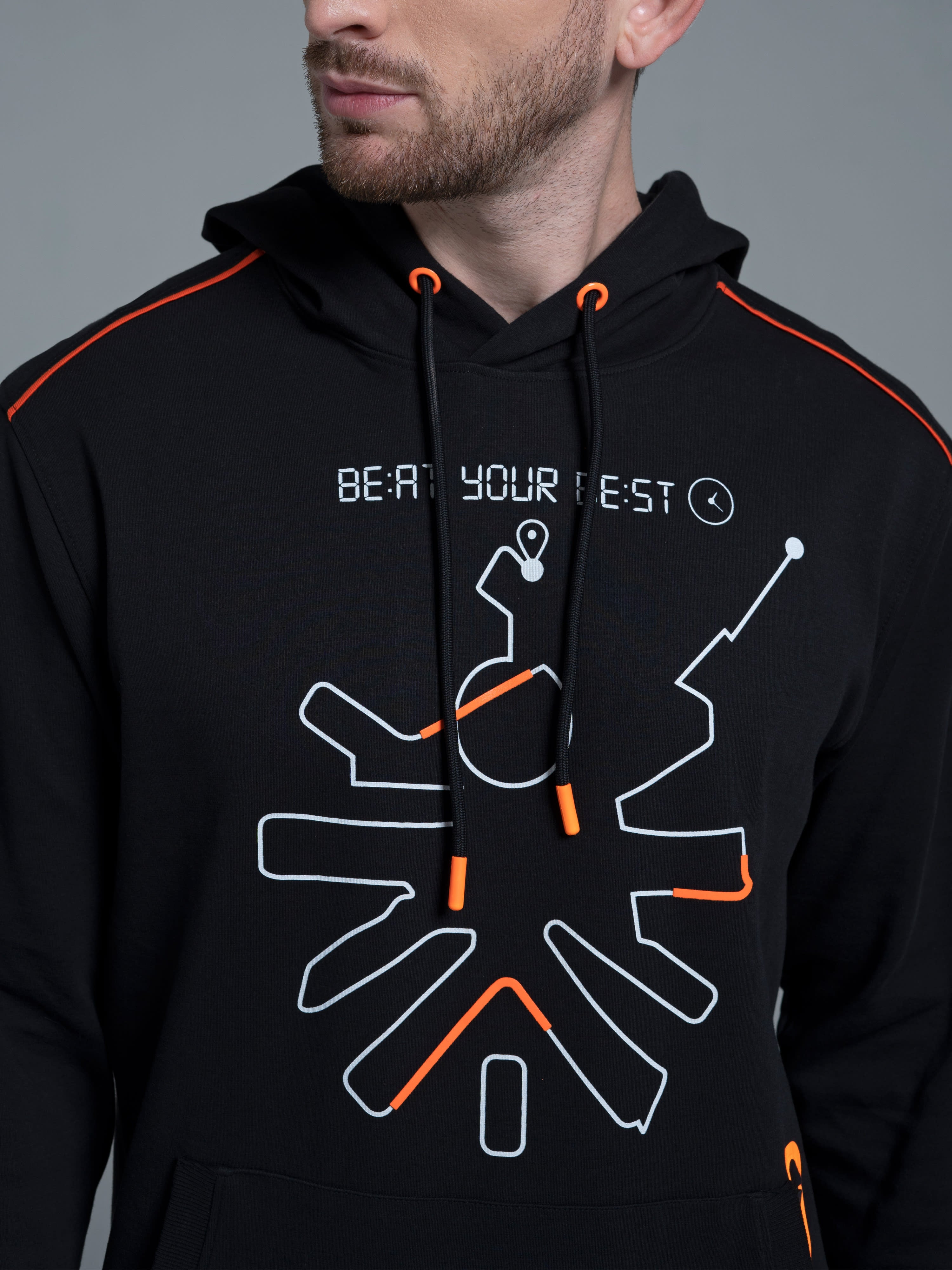 This winter, keep things hot with the Flexoft Men's Sweatshirt collection! Featuring a fun twist to the cultsport signature logo, this hooded sweatshirt brings the best of design elements, fabric and technology together. Its 'clever pockets' allow you to keep your gadgets conveniently safe while out for a jog and its comfort-maximising flexoft cotton keeps you cosy when indoors. The thumb hole detail adds to the utility while the witty binary design and neon highlights make it even more fashionably desirable!