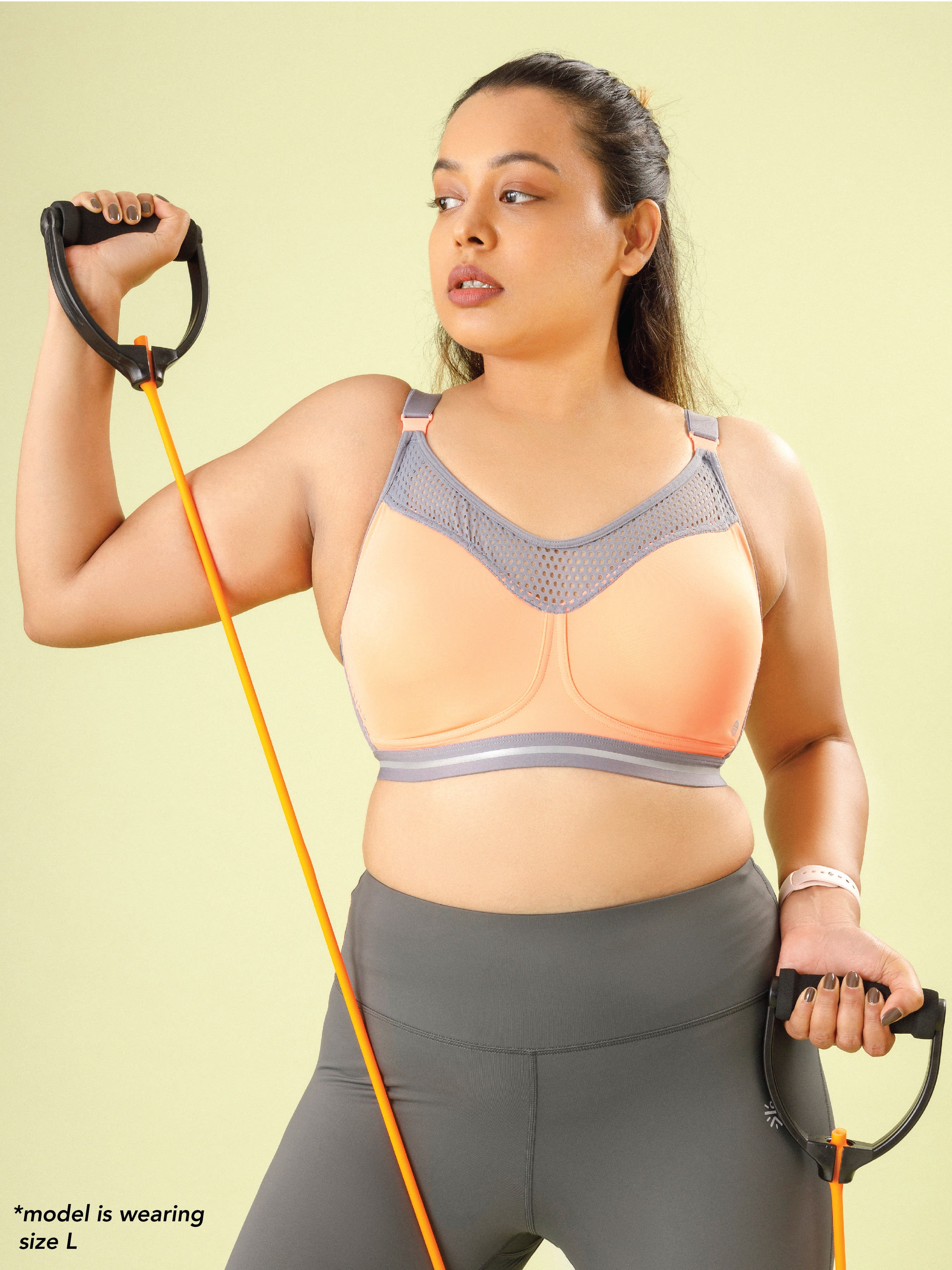 Your perfect training partner, this sports bra with its hidden stabilizer panels promises extra support and bounce control, especially during high impact activities. The power mesh allows for better ventilation and the hook & eye closure adds to your convenience while offering additional adjustability. Time to be fit with FormFit!