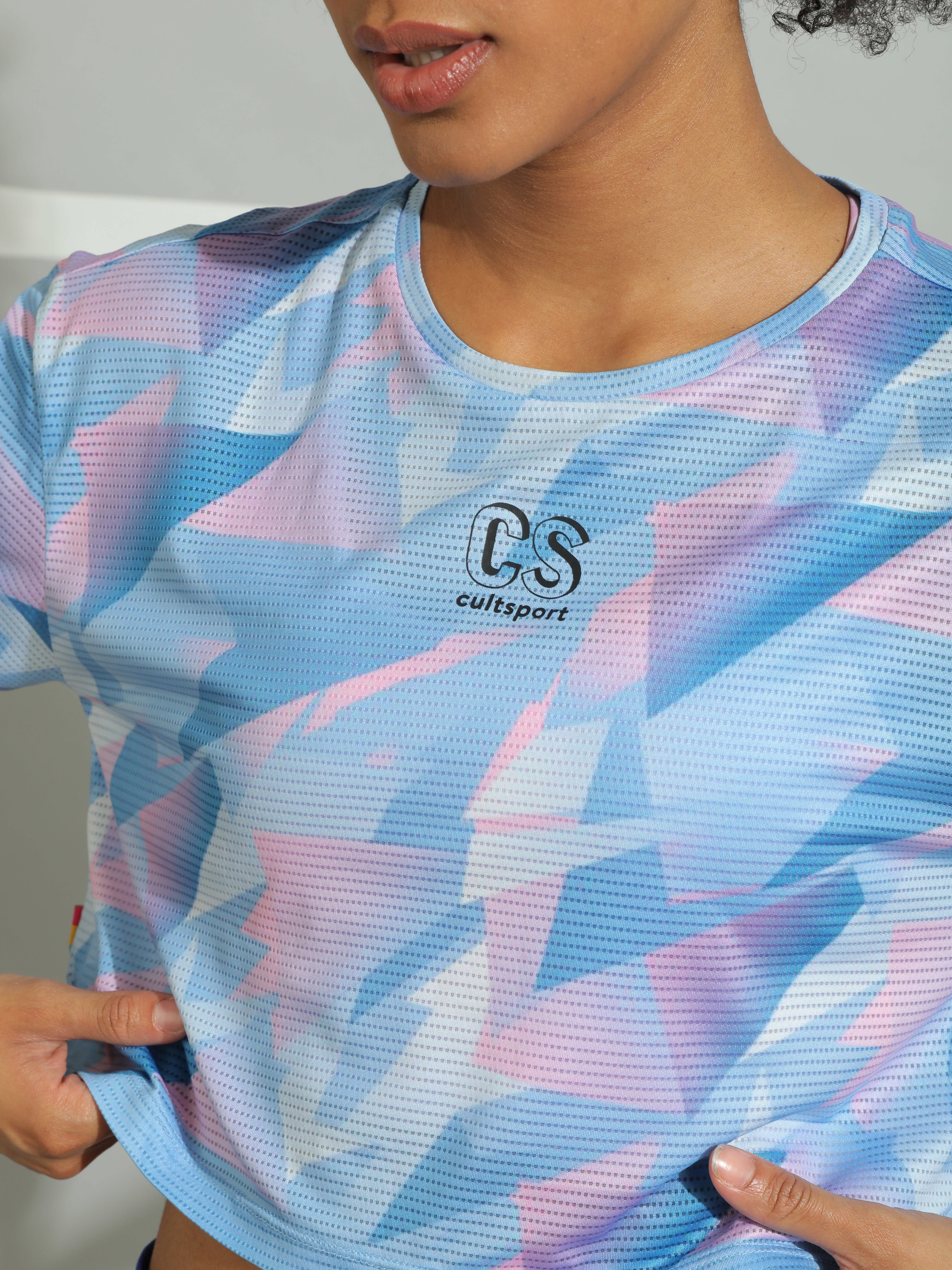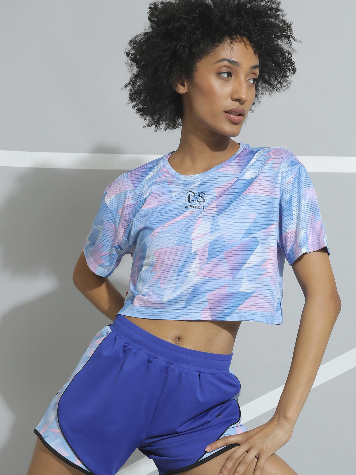 Spice up your training and leisure outfits with a fashion-forward workout top. Featuring a soft ombre overall print with statement graphics, it will pump up your all-day play game.