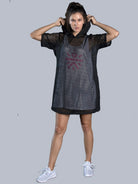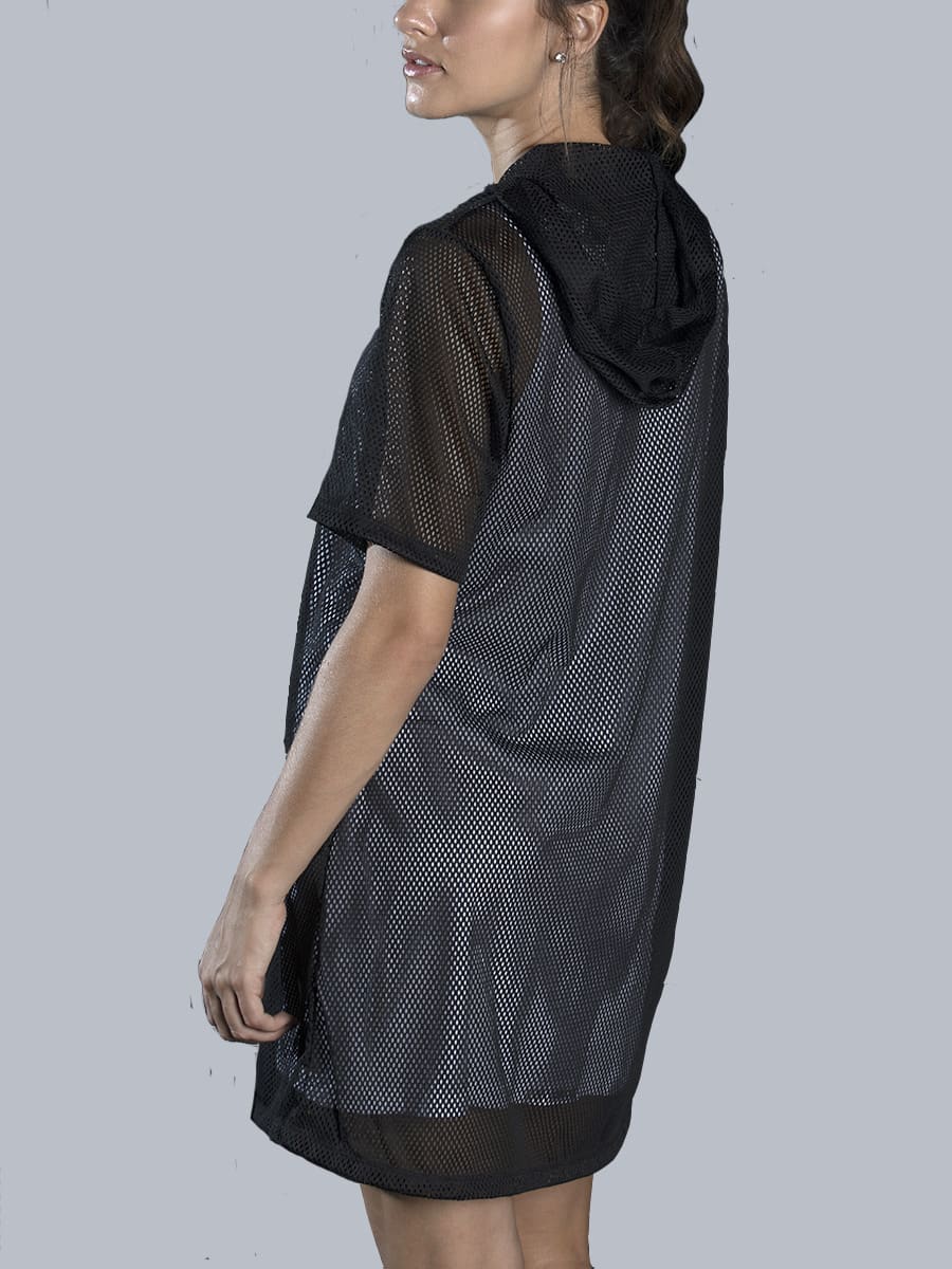 This relaxed fit, double layered hooded mesh dress paired with bold sneakers or trainers will give you that effortless active-streetwear look you always wanted.