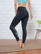 Update your go-to leggings with this flattering high-waisted pair with branding print. Cut in a skinny fit with a covered waistband for a stylish touch. Crafted from stretchy fabric and pockets for added comfort and utility. Yoga made easy