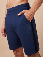 The Lounge Shorts: Your excuse to snuggle in style! Crafted with a luxurious cotton blend, these shorts in navy color are soft enough to not let you get out of your favorite blanket. With an inner drawcord, they offer a customizable fit for your comfort. Whether you're binge-watching your favorite TV show or enjoying a lazy Sunday afternoon, these Lounge Shorts are your go-to choice for relaxation and leisure. Say hello to your new favorite wardrobe staple!