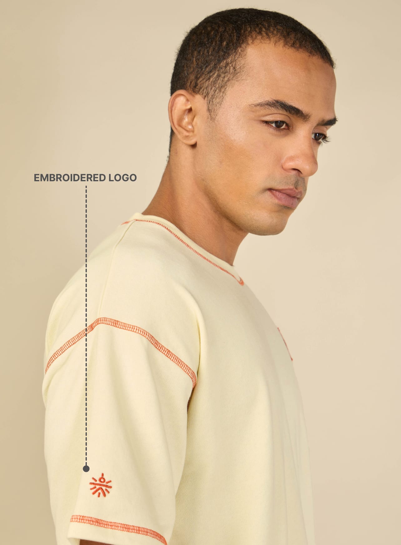 Dive into a cloud-feel tee with the Men Beige Cult Club T-shirt. Soft, comfy, and effortlessly cool, it's the perfect excuse to relax and recharge. The oversized fit gives a laid back look.