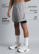 Own every sprint in the Men's 360 Degree Grey Performance Shorts—built for pace, performance, and comfort on the go. Crafted with a lightweight outer layer and FLY-DRY™ tech, they keep you cool, dry, and distraction-free. The elasticated waistband and inner drawcord provide a secure fit, while the side slits add extra ease of movement. The side pockets offer everyday storage, and the stretchy inner tights include a handy pocket for smaller essentials.