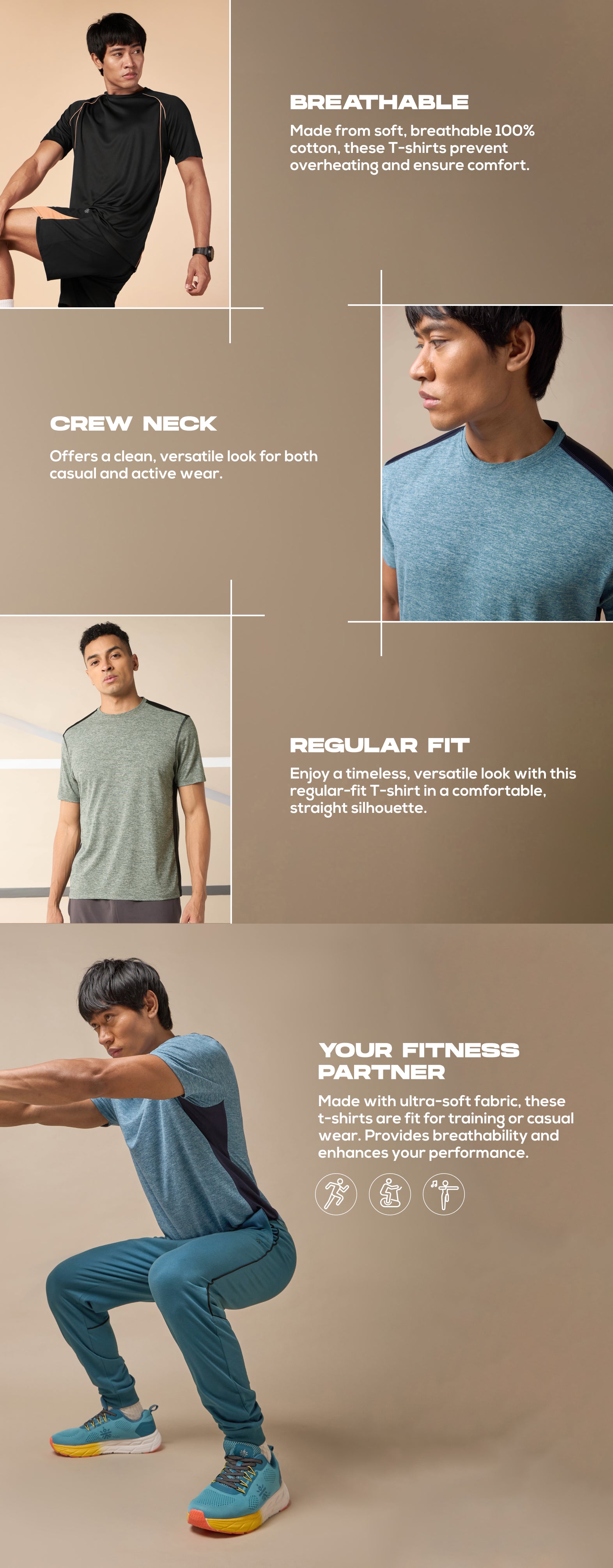 The Men's 360 Degree Performance T-shirt in navy is crafted from a breathable fabric for optimal airflow during workouts. The contrast stitching adds a stylish touch, while the comfortable fit ensures ease of movement, making it ideal for both gym sessions and everyday activities.