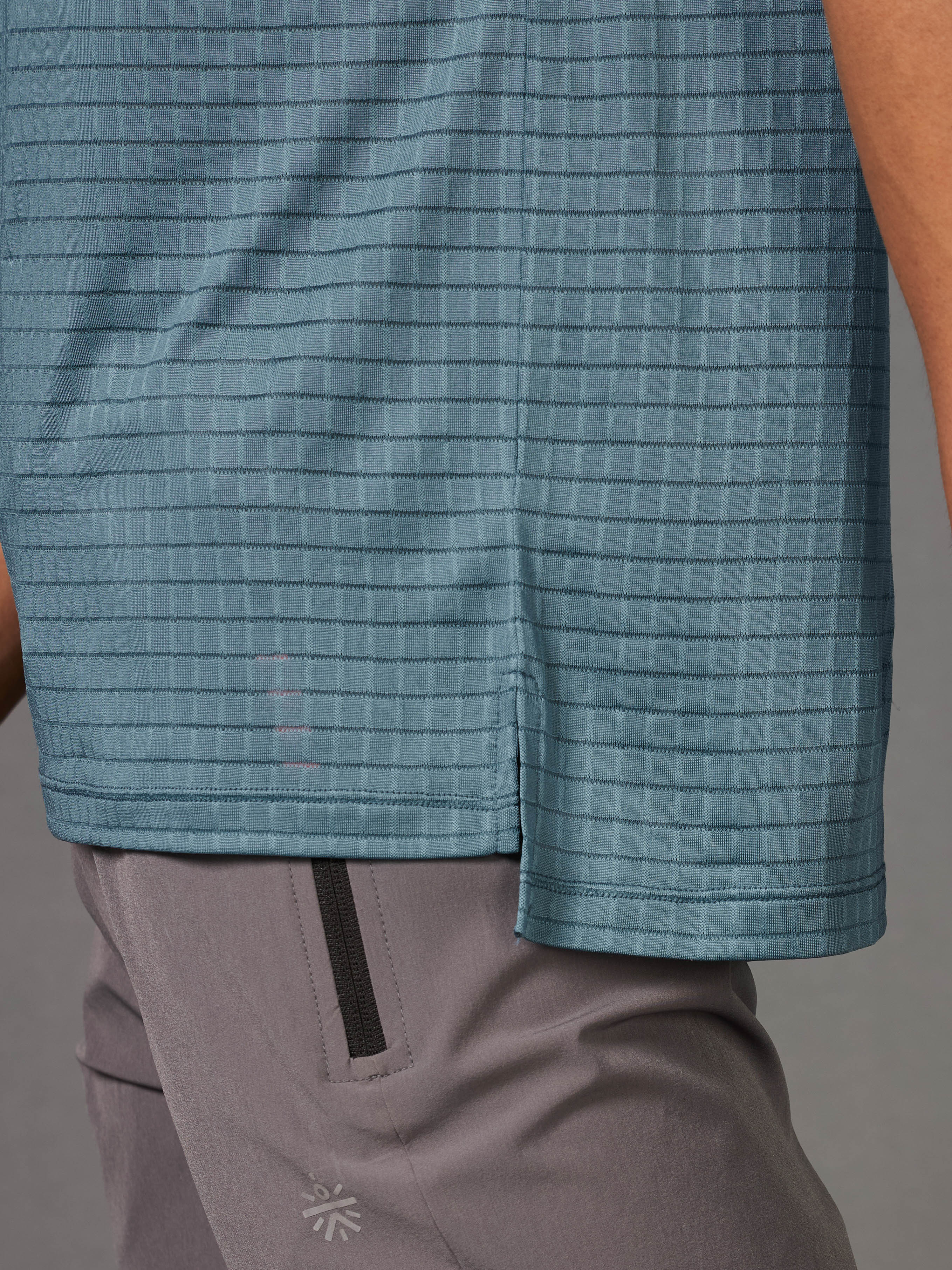 The Men's All Performance Blue T-shirt is designed for ultimate comfort and mobility. Made with breathable Flydry fabric, it keeps you cool and dry during intense workouts. The loose fit and side slits provide extra flexibility, making it perfect for any activity, from training to everyday wear.