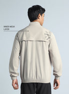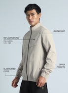 Stay sharp on the move with the Men's Beige Train in Workout Jacket, designed for comfort and function on every run. The FLY-DRY™ tech wicks away sweat fast to keep you moving fresh. Features a front open zipper for easy wear and elasticated cuffs for the lock in fit. The inner linning helps you to keep breathable while you are on the run. Finished with the reflective details that adds visibility during low light.