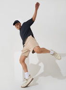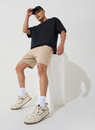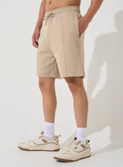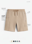 Designed to feel indulgent yet effortless, the Men's Beige Ultra Luxe Tailored Shorts moves with quiet confidence. The ultra luxe fabric delivers a buttery-smooth handfeel with superior stretch that adapts seamlessly to movement. The shape-retaining build preserves structure and maintains a clean silhouette through repeated wear. The side pockets provide practical storage while keeping the profile streamlined. The elasticated waistband delivers a secure, flexible fit that adapts comfortably throughout the day.