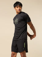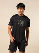 Stay cool and comfortable with Men's Black Brand Carrier Print T-shirt featuring a stylish brand carrier print. The Flydry technology ensures moisture-wicking for all-day freshness. Perfect for casual outings or workouts.