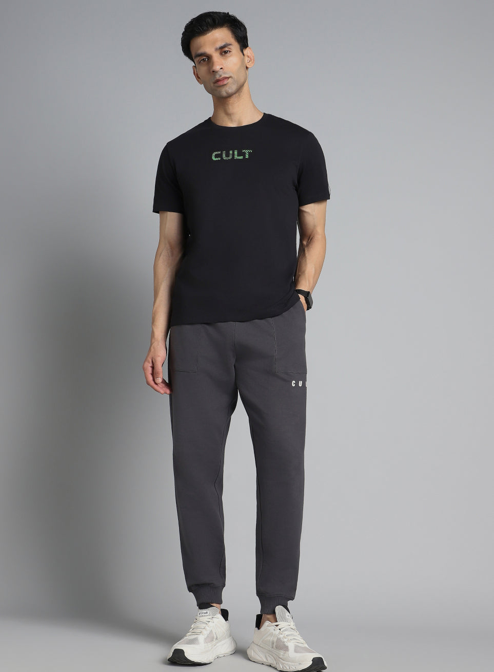 Switch to chill mode in the Men's Black Cult Branding Printed T-shirt, made for relaxed days and effortless street style. Crafted from super soft fabric that feels smooth and comfortable all day. The high-density chest print adds a bold look without bulk. Designed with the ribbed neckband that gives a clean finish, while the regular fit keeps movement easy and laid-back.