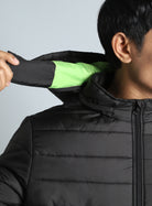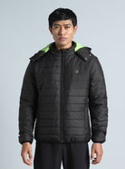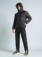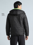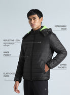 Take on the day with the Men's Black Detachable Hoodie Puffer Jacket, built for function and everyday style. Made with a smooth inner lining that feels comfortable and adds lasting durability. Designed with a front-open zipper and a detachable hood for versatile wear. Features zippered side pockets and an inner pocket for storage. The elasticated waistband and cuffs ensure a secure fit for daily use. Finished with a reflective logo for visibility. The reflective logo adds a sleek finishing touch. Perfect wear for gyms or laid-back strolls.