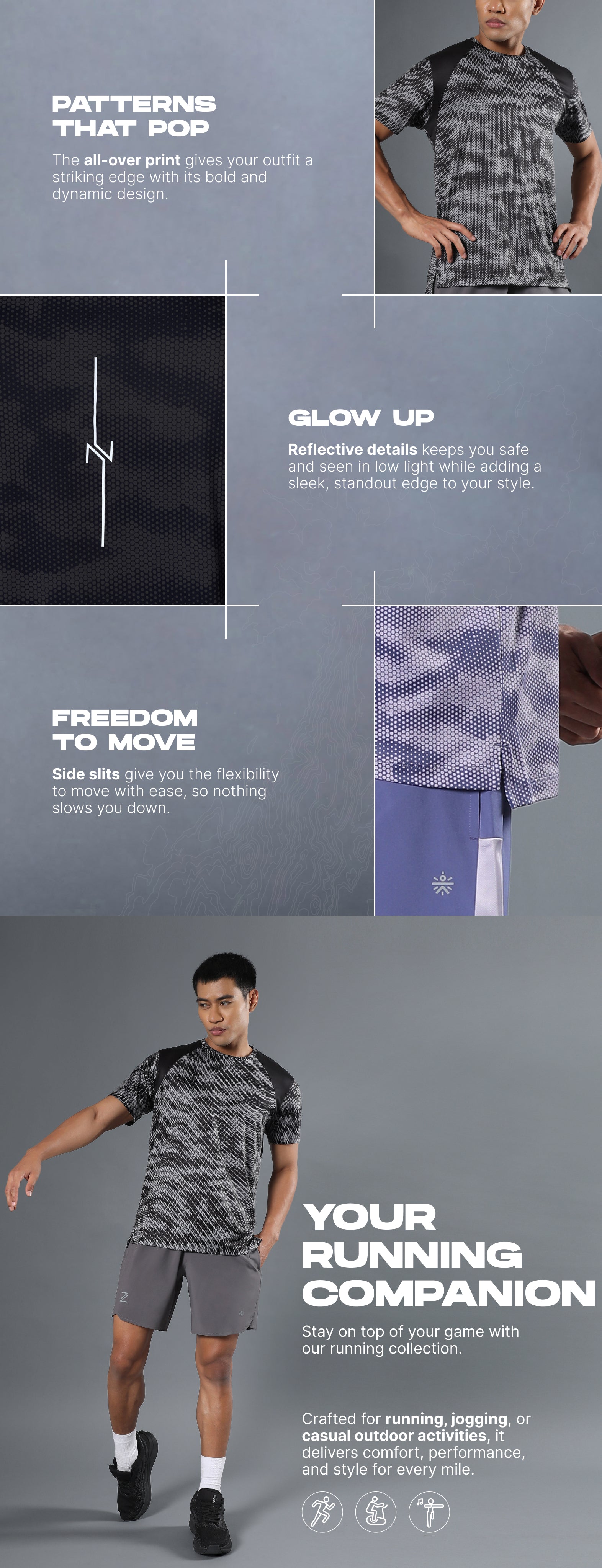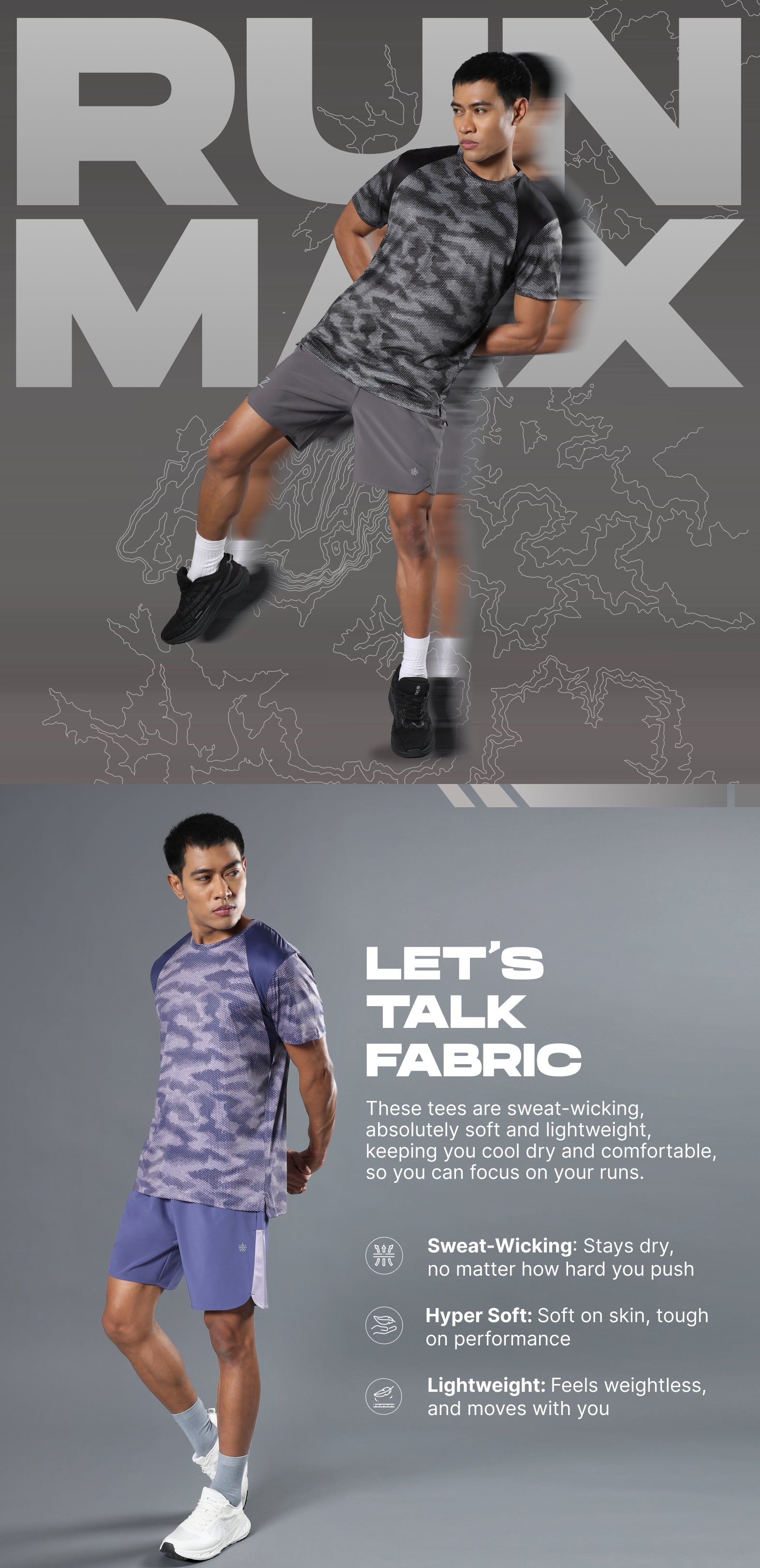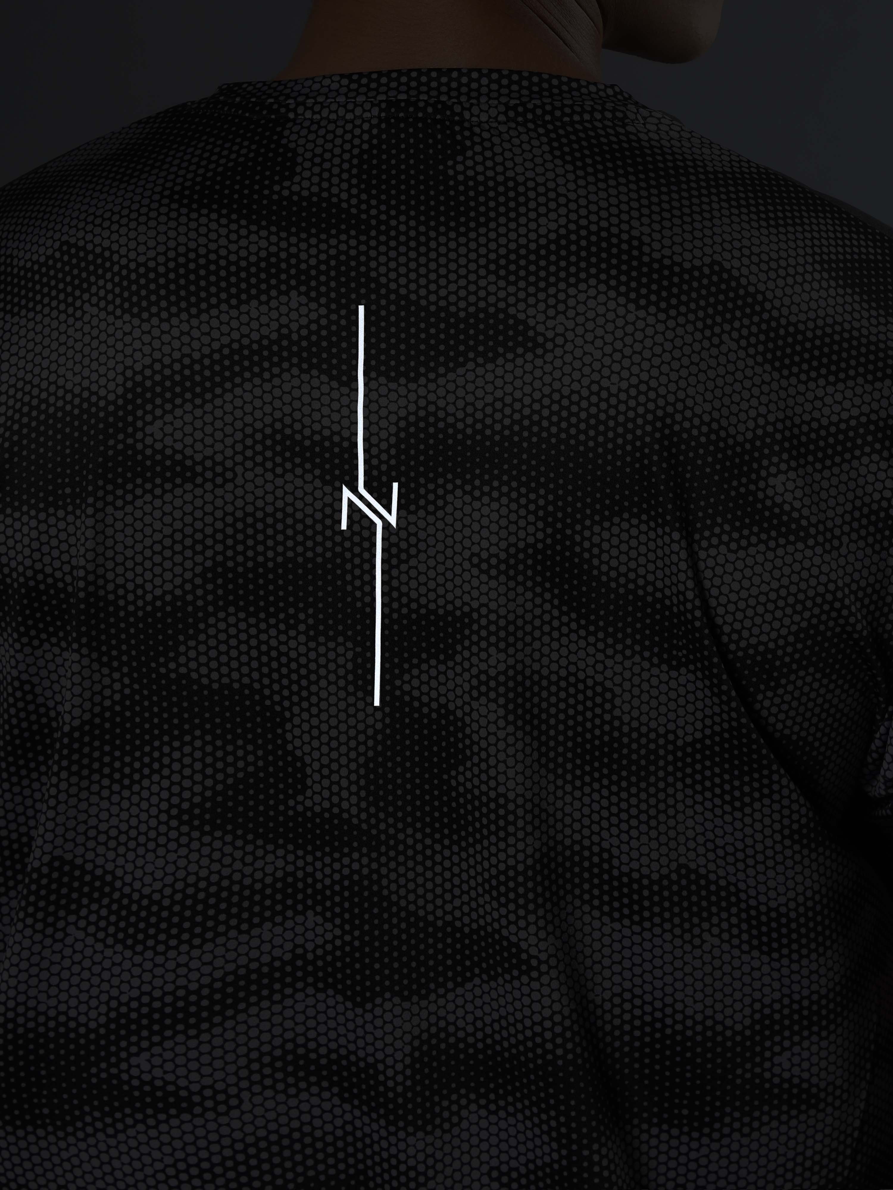 Run light and stay comfy with the Men's Black Landscape Camo Run T-shirt. Crafted with FLY-DRY™ tech, this tee wicks away sweat to keep you dry. The lightweight and hyper-soft fabric ensures all-day comfort. Side slits enhance airflow and offer unrestricted movement, making every stride feel effortless.