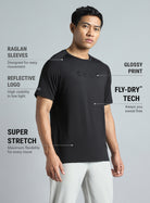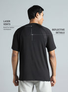 Hit your stride in the Men's Black Pace up Running T-Shirt. FLY-DRY™ tech wicks away sweat to keep you cool and dry through every mile. The super stretch fabric moves with you through every stride, while the raglan sleeves support natural shoulder movement. The laser vents boost airflow, and the breathable panels keep things fresh.