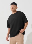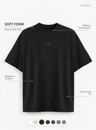 Step into elevated comfort with the Men's Black Soft Form Oversized T-shirt, designed to move seamlessly through your day. The soft form fabric delivers a smooth, cotton-rich handfeel with adaptive stretch that moves with you all day. The shape-retaining build maintains structure through repeated wear and washing. The ribbed neckband holds a clean definition for a refined finish. The oversized fit offers added room for natural movement and comfort.