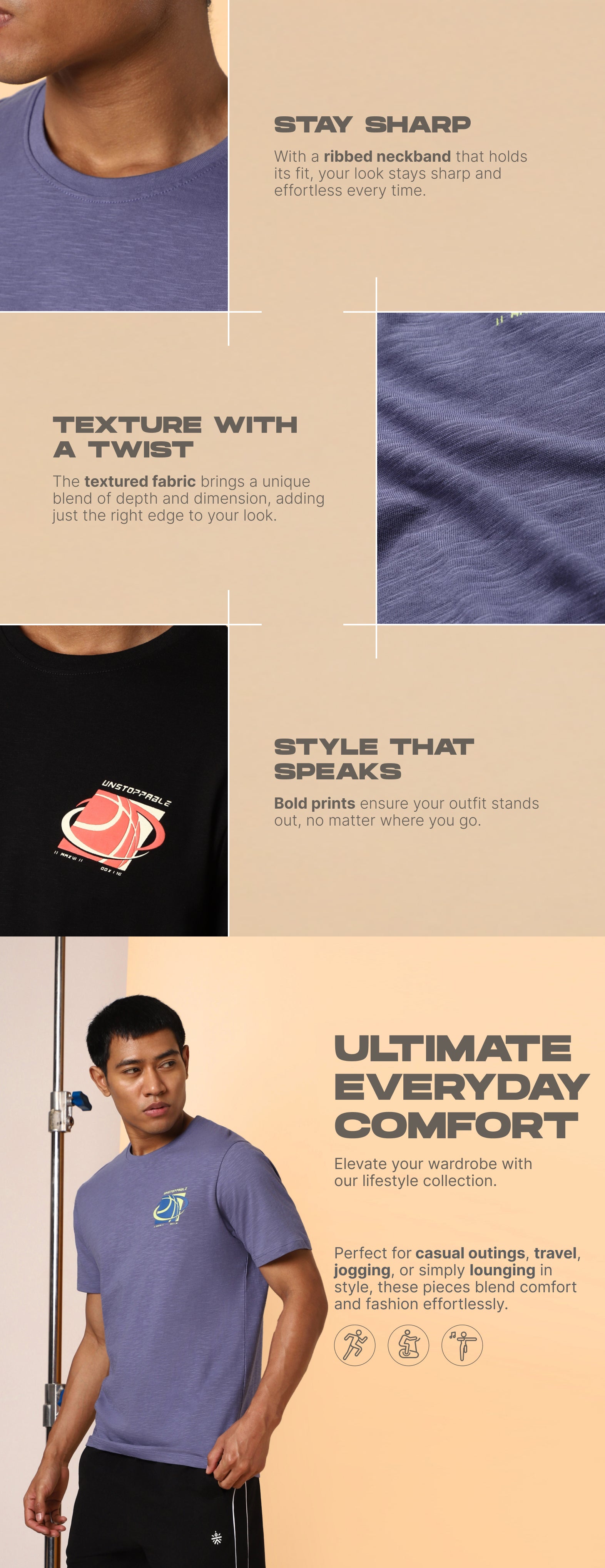 Bold looks meet all-day comfort in the Men's Black Unstoppable Typo T-shirt. Crafted from super-soft fabric, it feels as good as it looks. The ribbed neckband offers a snug yet flexible fit, keeping it effortlessly put-together. The textured fabric adds a refined touch, whike the bold graphic print ties it all together for a look that’s effortlessly cool.