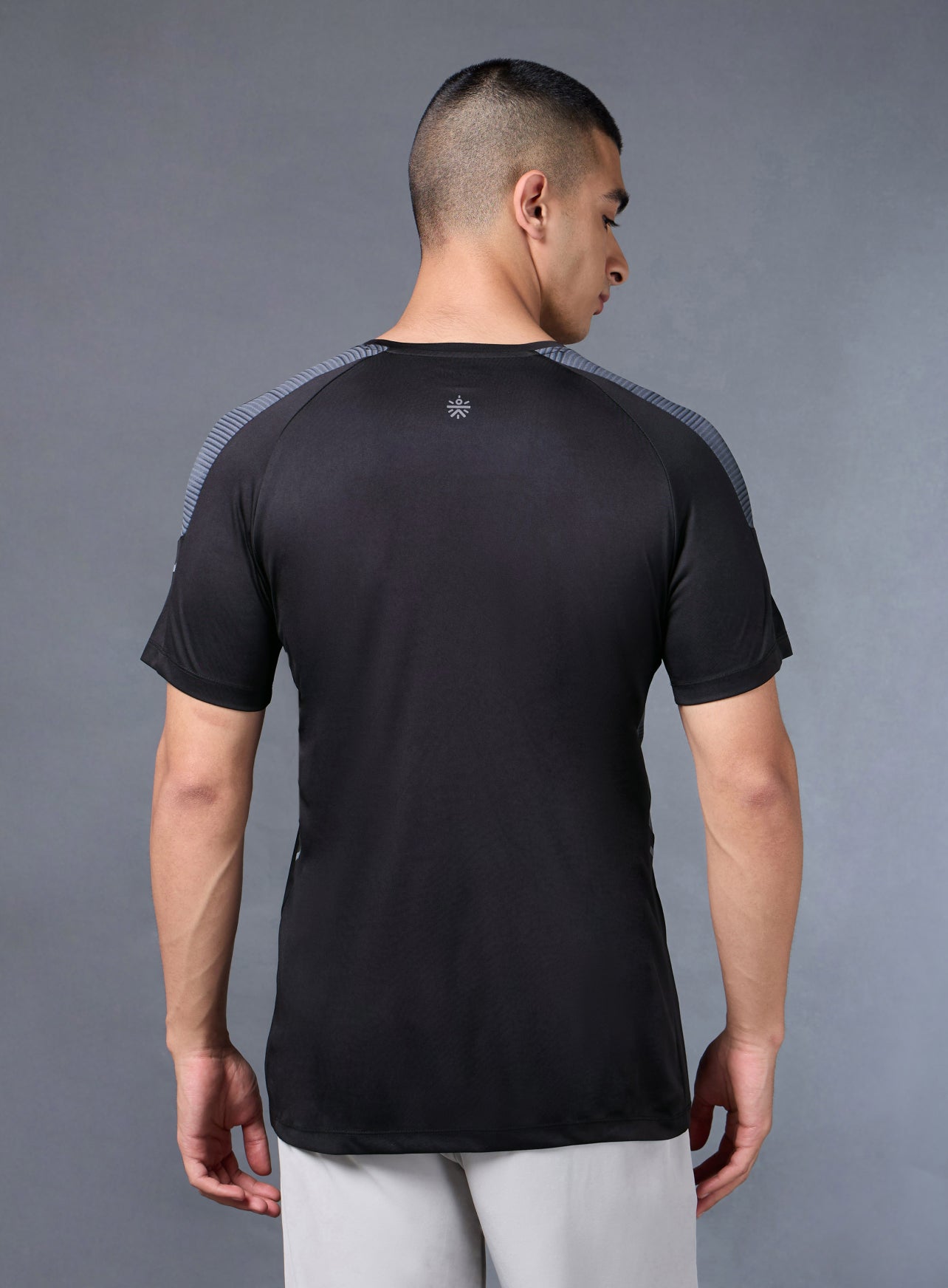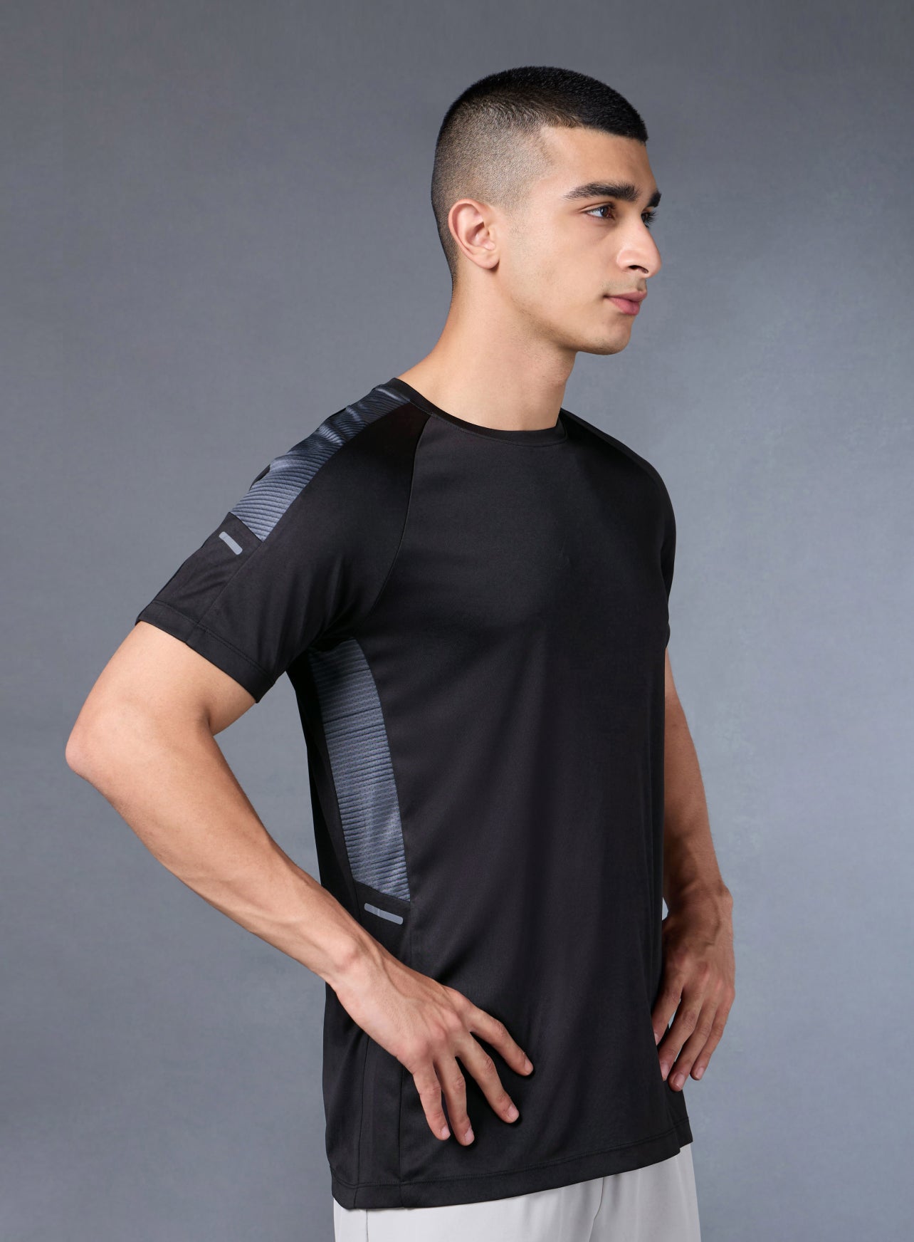 Run like you mean it with Men's Black Urban Pro Run T-shirt. Lightweight fabric ensures you stay cool and comfortable, while raglan sleeves and seams for mobility allow full range of motion for every stride. Printed panels on the sleeves and sides add a bold touch to your wardrobe.