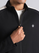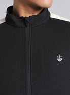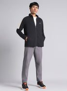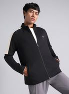 Level up your layers with the Men's Black Workout Essential Mid Layer Jacket. Made from soft cotton-lycra for a smooth feel that stretches with you. The front-open zipper allows easy on-off, while the side pockets keep your essentials handy. The raglan sleeves support natural mobility, so you stay ready through every rep.