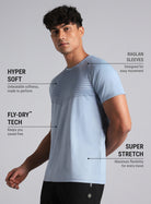 Own every stride in the Men's Blue Energy Map Printed T-shirt. Made with lightweight, hyper-soft fabric that’s breathable and smooth against the skin. FLY-DRY™ tech wicks away sweat to keep you dry, and the super-stretch fabric flexes with every move. The raglan sleeves allow unrestricted movement. The holographic logo adds a bold finish to your training look.