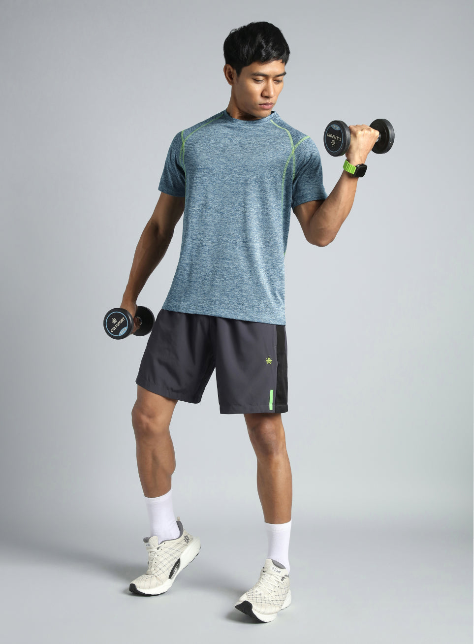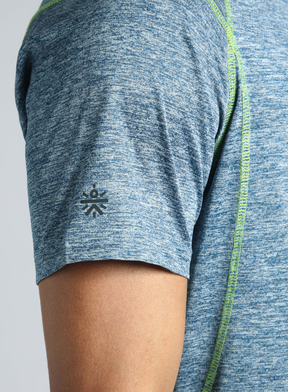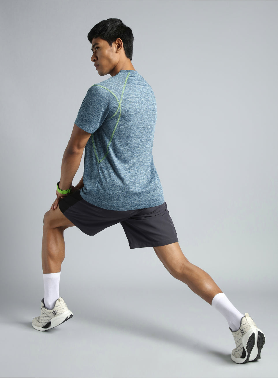 Push limits in style with the Men's Blue Train Day Performance T-shirt, built to move with you. Crafted from hypersoft, breathable fabric for all-day comfort and airflow that keeps you feeling fresh. Features seams for mobility that allow unrestricted movement during training. Designed with contrast stitches and holographic logo adds a sharp, modern edge to your workout look.