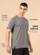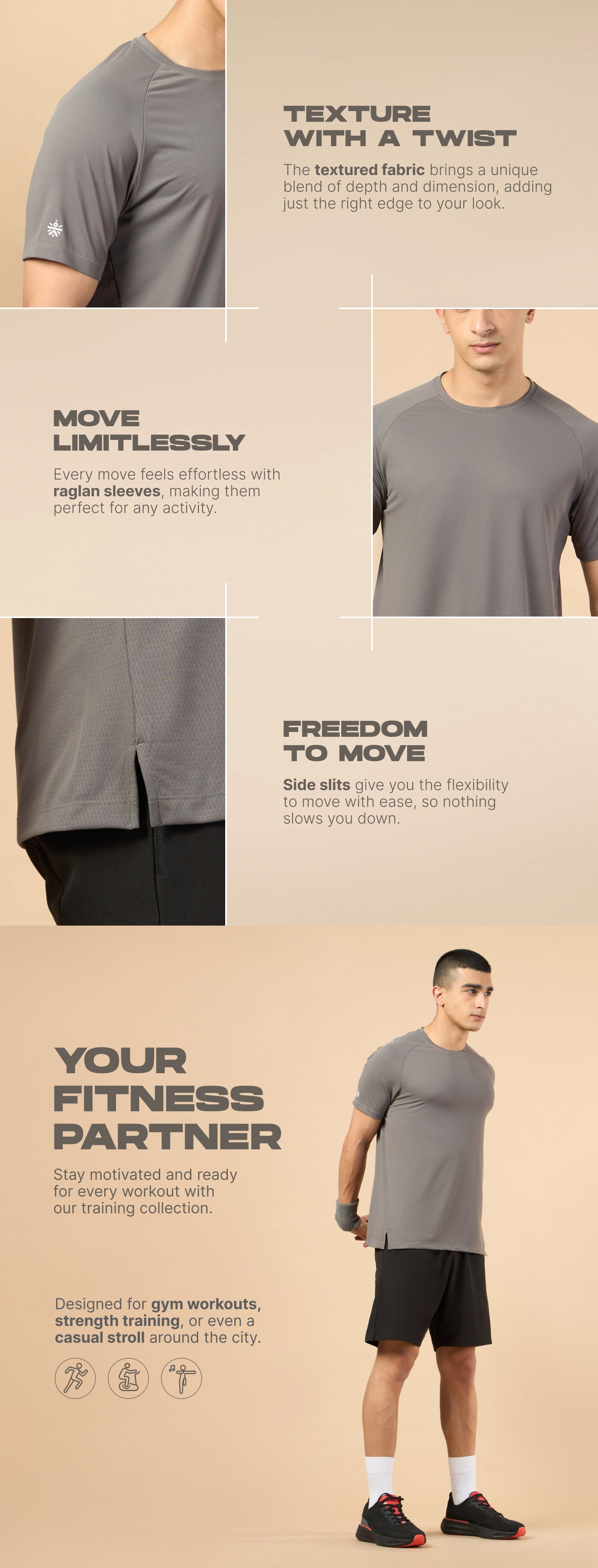 Workout in style with the Men's Dark Grey All Workout Training T-shirt. Powered by FLY-DRY™ tech, this tee wicks sweat fast to keep you cool and dry. The super-stretch fabric moves with you, while raglan sleeves give you unrestricted movement. Side slits add extra flex, making every rep, sprint, and stretch feel effortless.