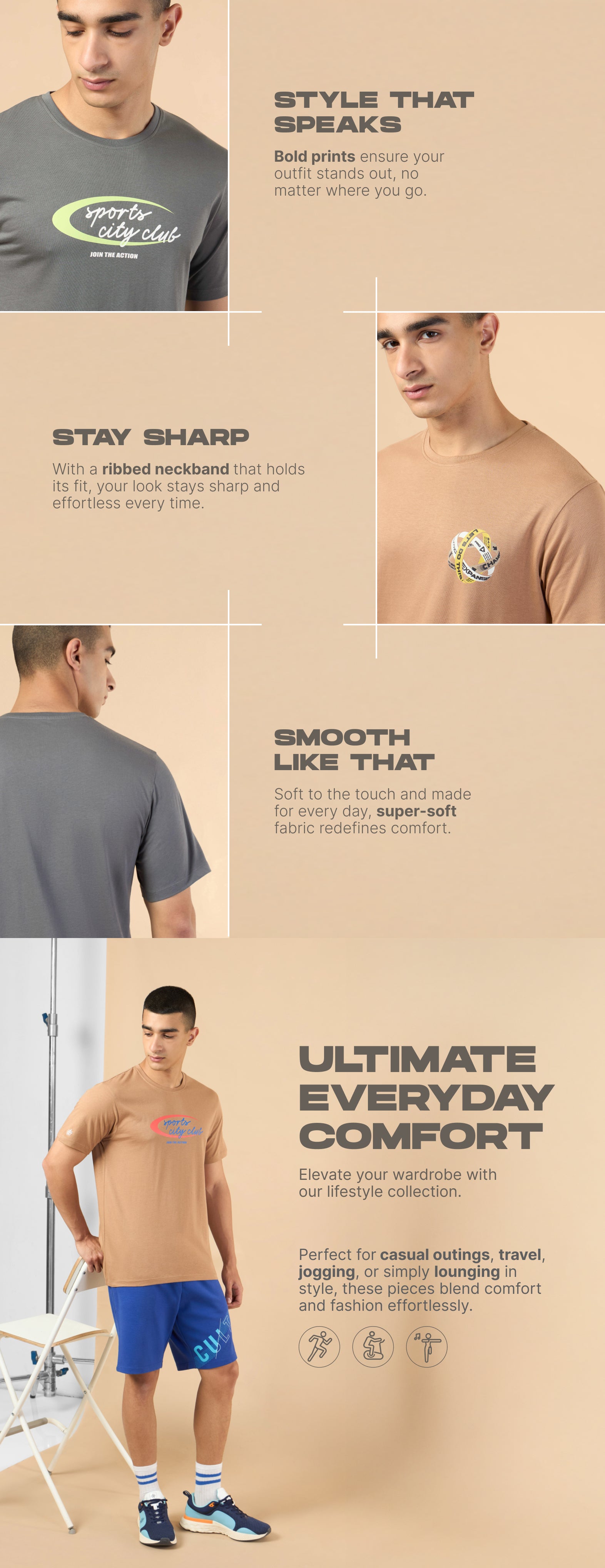 Men's Khaki Community Graphic T-shirt