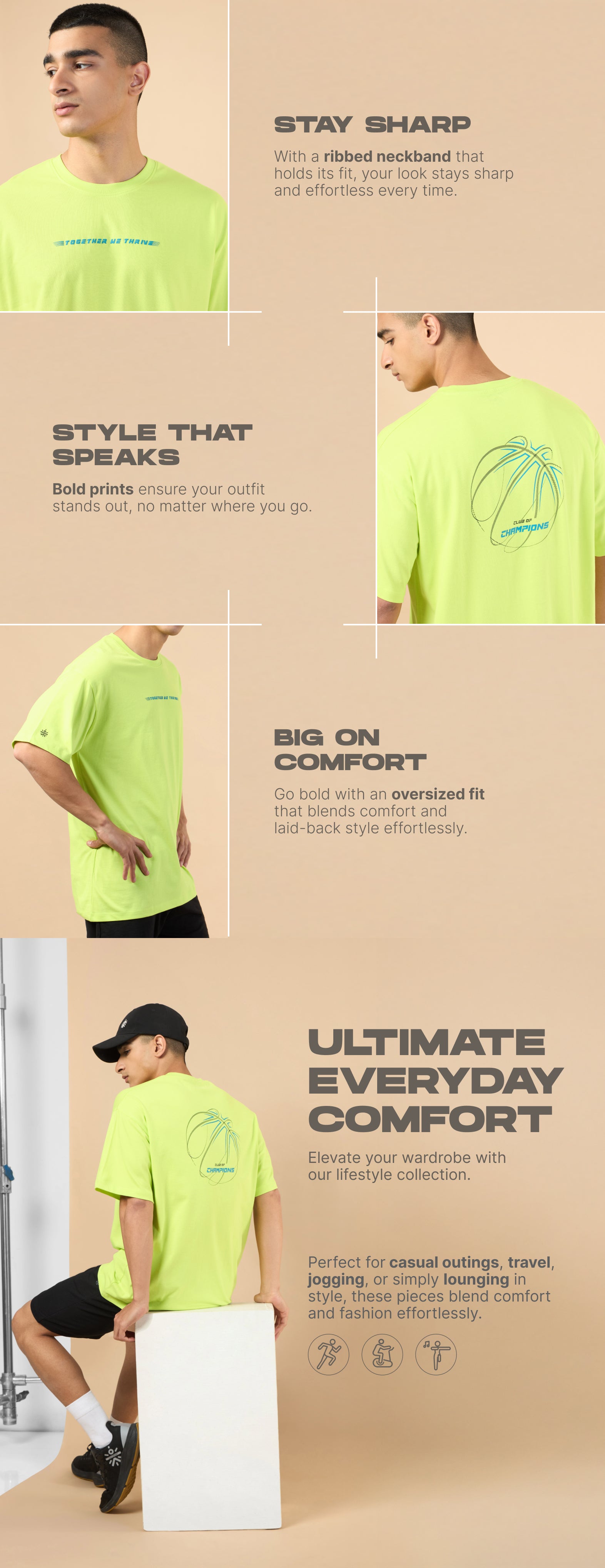 Train hard, look good in the Men's Lime Community Graphic T-shirt. Made from super-soft fabric, this tee feels as good as it looks. The oversized fit gives you room to move, while a ribbed neckband keeps its shape through every session. Finished with a cool print for extra style, it's your go-to for effortless training days.