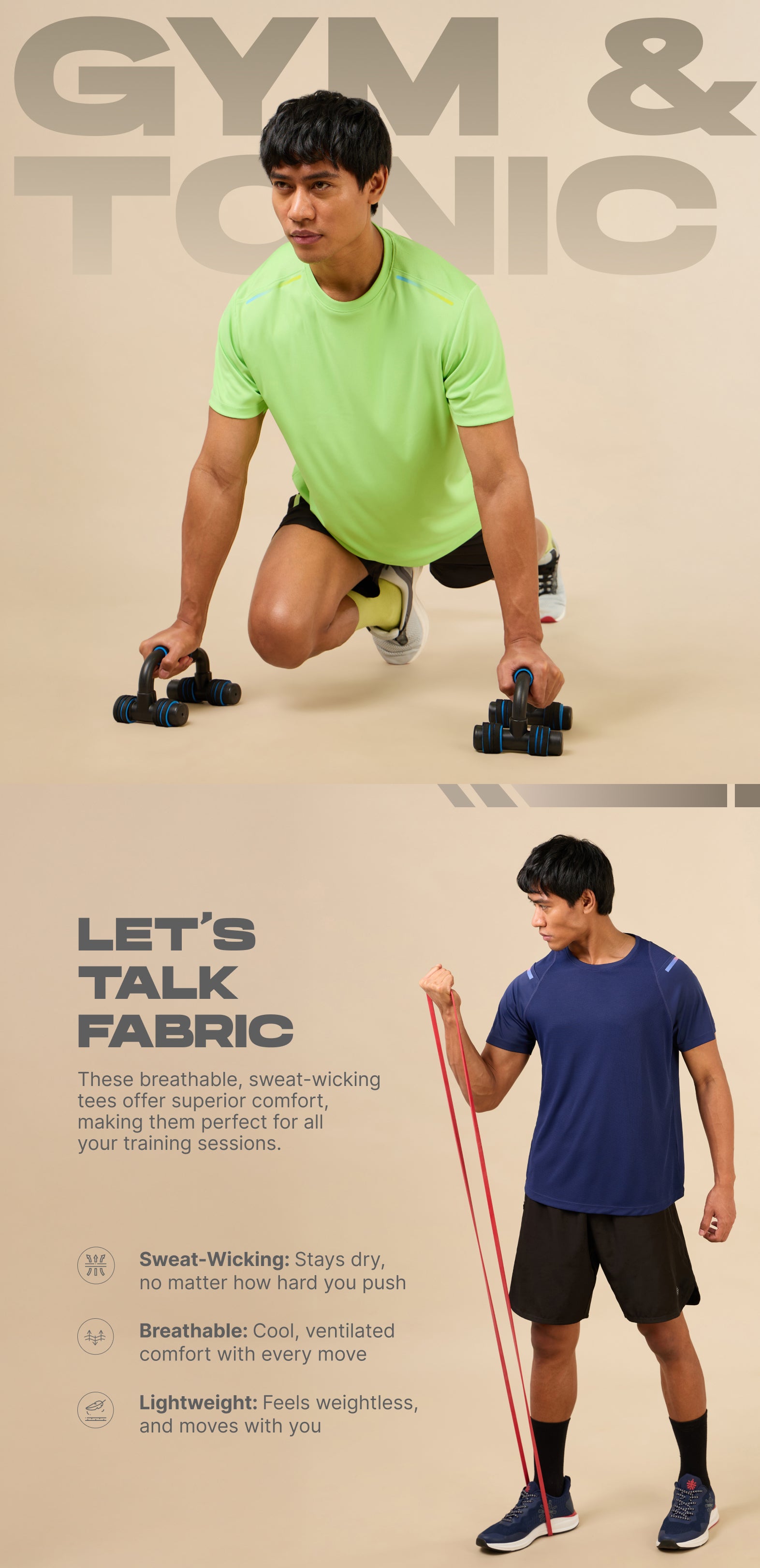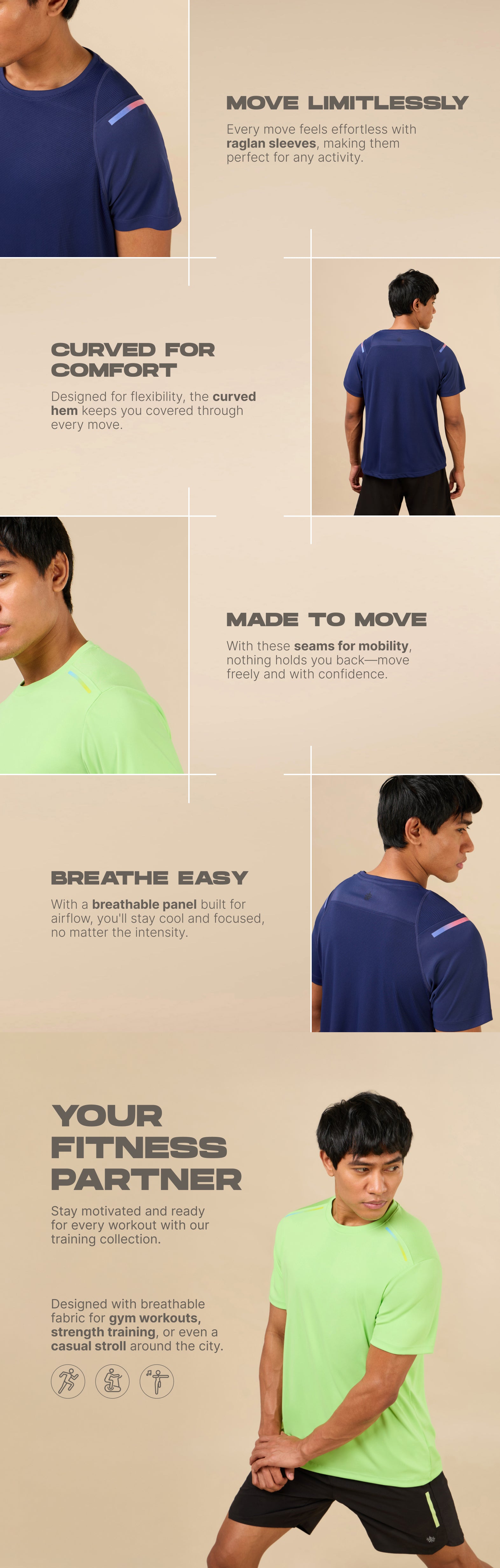 Gear up with the Men’s Navy Ergonomic Training T-shirt – built to move with you. Crafted with FLY-DRY™ technology, this fabric swiftly wicks away moisture to keep you dry and comfortable. The raglan sleeves enhance flexibility while the curved hem keeps your movement unrestricted. The regular fit ensures all-day comfort, making it perfect for intense workouts.