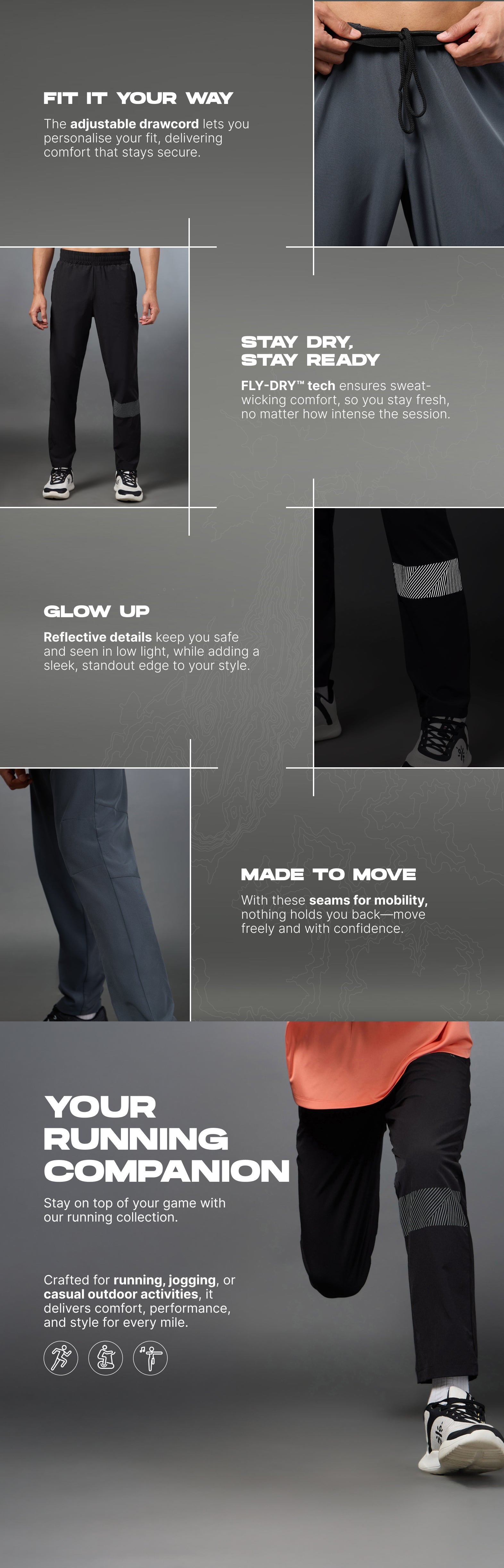Hit your stride with the Men's Night Jogger Black Performance Trackpants! Crafted with lightweight fabric that keeps you dry and comfortable. Designed with reflective details for visibility during low-light runs and zipper pockets to secure your essentials. The inner drawcord offers a custom fit, while the multi-stretch fabric ensures unrestricted movement for every mile.