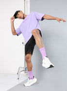 Go big on comfort with the Men's Purple Dance Back Print T-shirt. Crafted from super-soft fabric, it’s made for effortless movement and an easygoing feel. The oversized fit lets you groove freely, while the ribbed neckband adds a structured touch. Finished with a bold graphic print, this tee is your perfect pick for style that moves with you.