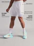 Run fast, stay fresh with Men's Run Elevate White Integrated Shorts. The FLY-DRY™ tech wicks sweat to keep you cool and dry through intense runs. The stretchy in-built shorts offer unmatched flexibility, while the inner drawcord ensures a secure fit. The side pockets on both sides keep essentials close, making these shorts a perfect blend of performance and practicality.
