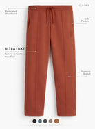 Find your flow in the Men's Rust Ultra Luxe Tailored Trackpants, designed for elevated comfort. The ultra luxe fabric offers a buttery-smooth handfeel with superior stretch that comfortably adapts to your every movement. The shape-retaining build preserves structure and maintains a defined silhouette through repeated wear. The side pockets provide practical space for essentials. The elasticated waistband ensures a secure, flexible fit that stays comfortable throughout the day.