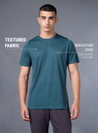 Take on the miles, one step at a time with our Men's Teal Honeycomb Knit Run T-shirt! Crafted with breathable, textured fabric, it keeps you comfortable and stylish throughout your run. The contrast panel with piping elevates your look, while seams for mobility offer full range of motion. A perfect blend of performance and design—made for every run.