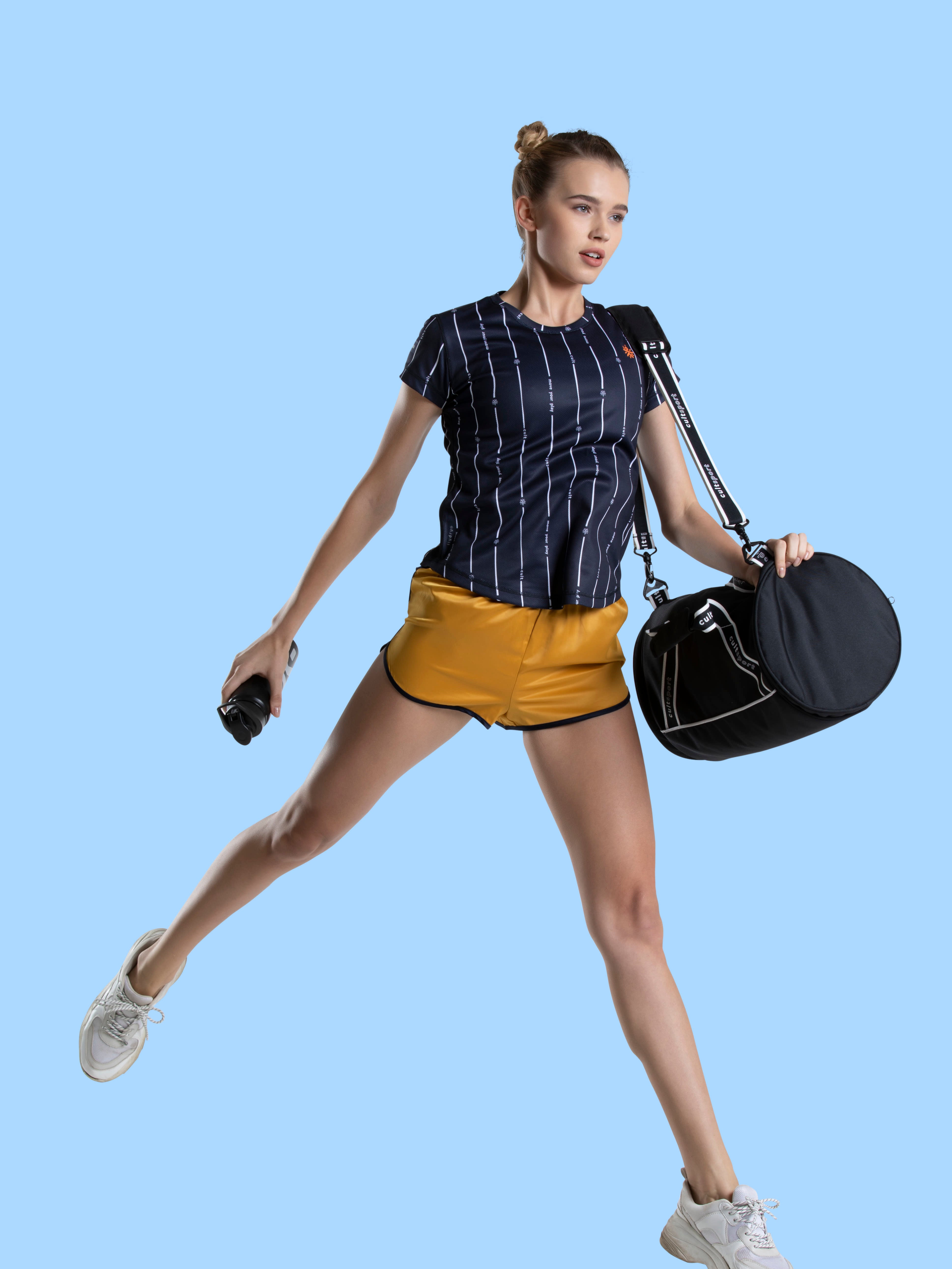 Make heads turn with this round neck striped t-shirt! Stay breezy throughout your workout.